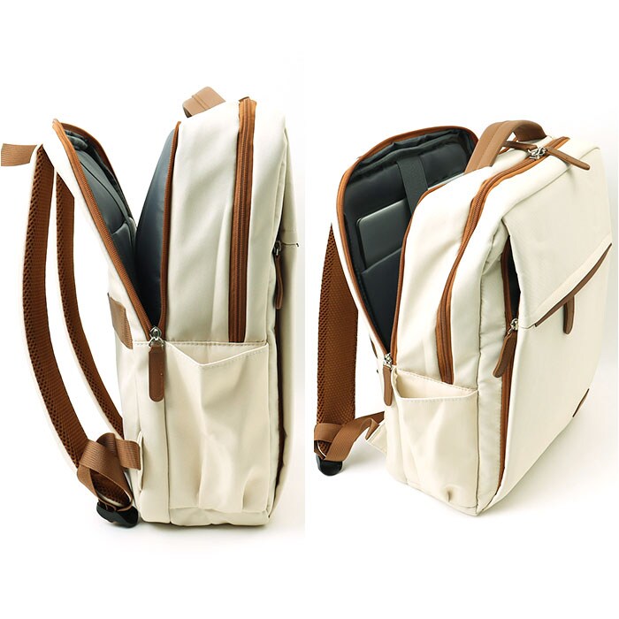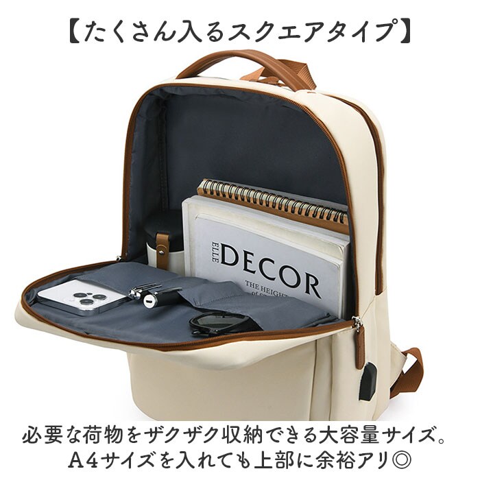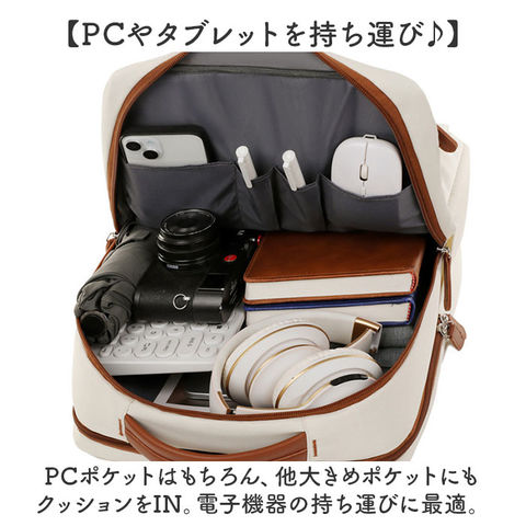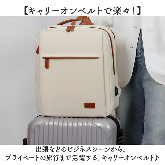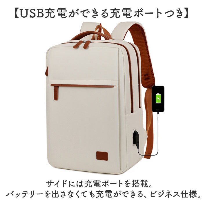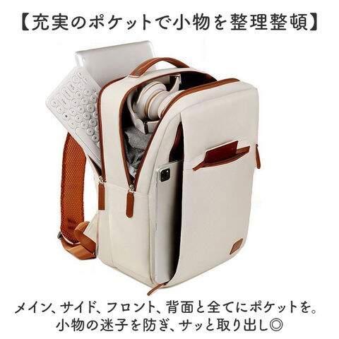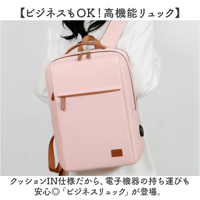 | 商品説明 | 【ビジネスもOK!高機能リュック】クッションIN仕様だから、電子機器の持ち運びも安心◎「ビジネスリュック」が登場。【PCやタブレットを持ち運び♪】PCポケットはもちろん、他大きめポケットにもクッションをIN。電子機器の持ち運びに最適。【たくさん入るスクエアタイプ】必要な荷物をザクザク収納できる大容量サイズ。A4サイズを入れても上部に余裕アリ◎【USB充電ができる充電ポートつき】サイドには充電ポートを搭載。バッテリーを出さなくても充電ができる、ビジネス仕様。【突然の雨でも慌てないでOK☆】小雨程度なら雨粒を弾く、撥水加工生地を採用。汚れにも強い。※完全防水ではありません。【充実のポケットで小物を整理整頓】メイン、サイド、フロント、背面と全てにポケットを。小物の迷子を防ぎ、サッと取り出し◎【キャリーオンベルトで楽々!】出張などのビジネスシーンから、プライベートの旅行まで活躍する、キャリーオンベルト♪【肩に優しい作りがポイント】ストラップと背中にクッションを配置。長時間の持ち歩きの負担を軽減する優しい作り。【ポケット仕様】フロント:ファスナーポケット×1メイン収納:オープンポケット×2、ペンポケット×2背面収納:PCポケット×1 |