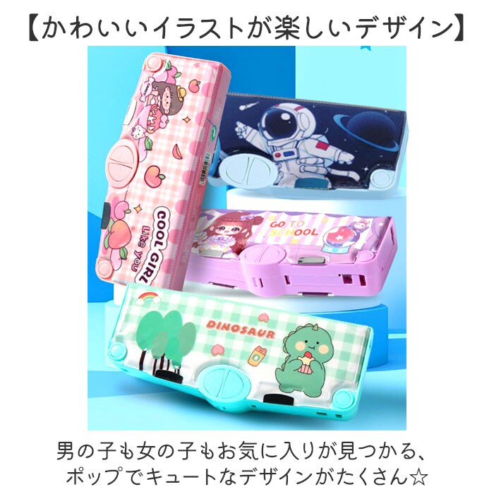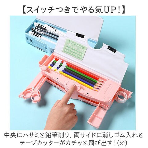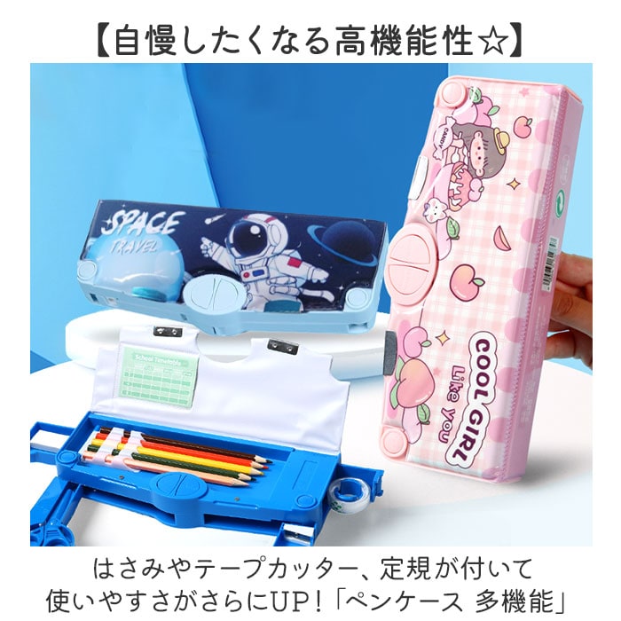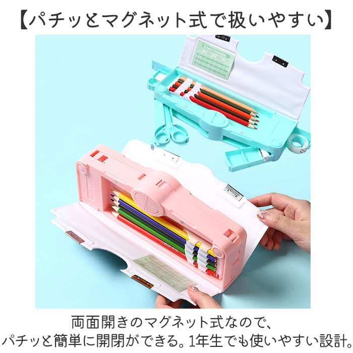 | 商品説明 | 【自慢したくなる高機能性☆】はさみやテープカッター、定規が付いて使いやすさがさらにUP!「ペンケース 多機能」【小学生にぴったりの多機能◎】鉛筆や定規など必要な筆記用具を分けて収納でき、はさみやテープカッターも付いて使い勝手◎【スイッチつきでやる気UP!】中央にハサミと鉛筆削り、両サイドに消しゴム入れとテープカッターがカチッと飛び出す!(※)勢いよく飛び出ますので、スイッチを押す際はご注意ください。【隠し定規でスッキリ収納!】定規はペンケース内側のスライドバーを動かして取り出す仕組み。【片付けがしやすい配置】鉛筆ホルダー、消しゴムスペース、裏面収納など、所定の場所があるからお片付けも楽々♪【パチッとマグネット式で扱いやすい】両面開きのマグネット式なので、パチッと簡単に開閉ができる。1年生でも使いやすい設計。【壊れにくい丈夫なつくり】軽量で丈夫なABS素材を使用。うっかり机から落としてしまっても壊れにくいのも嬉しい。【かわいいイラストが楽しいデザイン】男の子も女の子もお気に入りが見つかる、ポップでキュートなデザインがたくさん☆【ギフトにもオススメ☆】入学祝いや進級祝いの贈り物にもぴったり!実用的なアイテムだからきっと喜ばれる! |