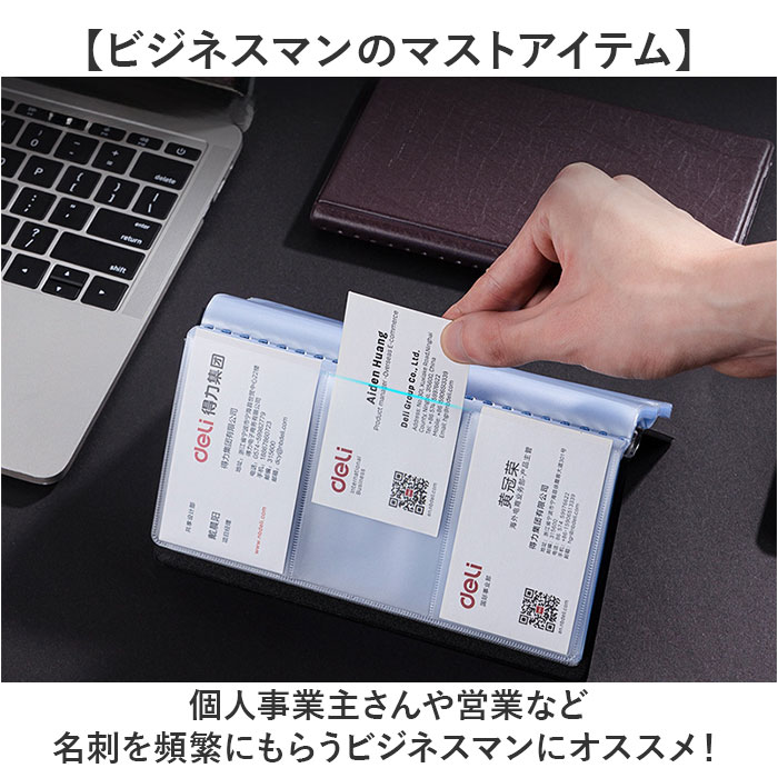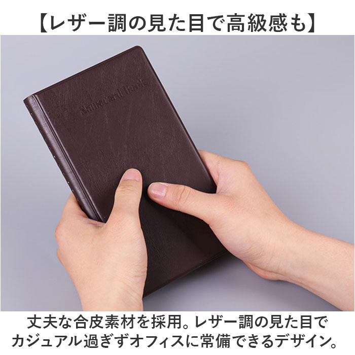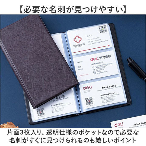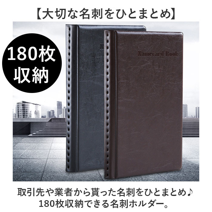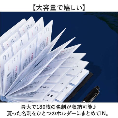 | 商品説明 | 【大切な名刺をひとまとめ】取引先や業者から貰った名刺をひとまとめ♪180枚収納できる名刺ホルダー。【ビジネスマンのマストアイテム】個人事業主さんや営業など名刺を頻繁にもらうビジネスマンにオススメ!【レザー調の見た目で高級感も】丈夫な合皮素材を採用。レザー調の見た目でカジュアル過ぎずオフィスに常備できるデザイン。【必要な名刺が見つけやすい】片面3枚入り、透明仕様のポケットなので必要な名刺がすぐに見つけられるのも嬉しいポイント【大容量で嬉しい】最大で180枚の名刺が収納可能♪貰った名刺をひとつのホルダーにまとめてIN。【カバンや引き出しに】スリムかつコンパクトな設計でカバンや引き出しに入れても場所を取らないのもGOOD。 |