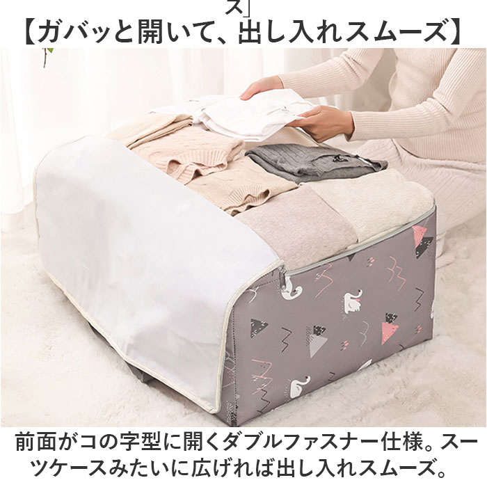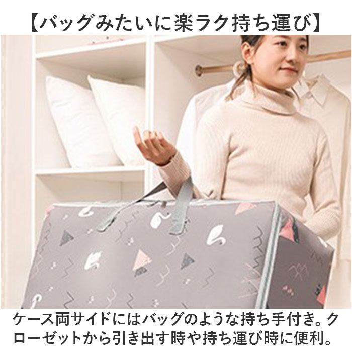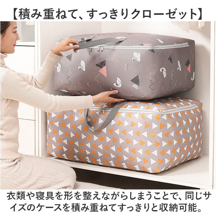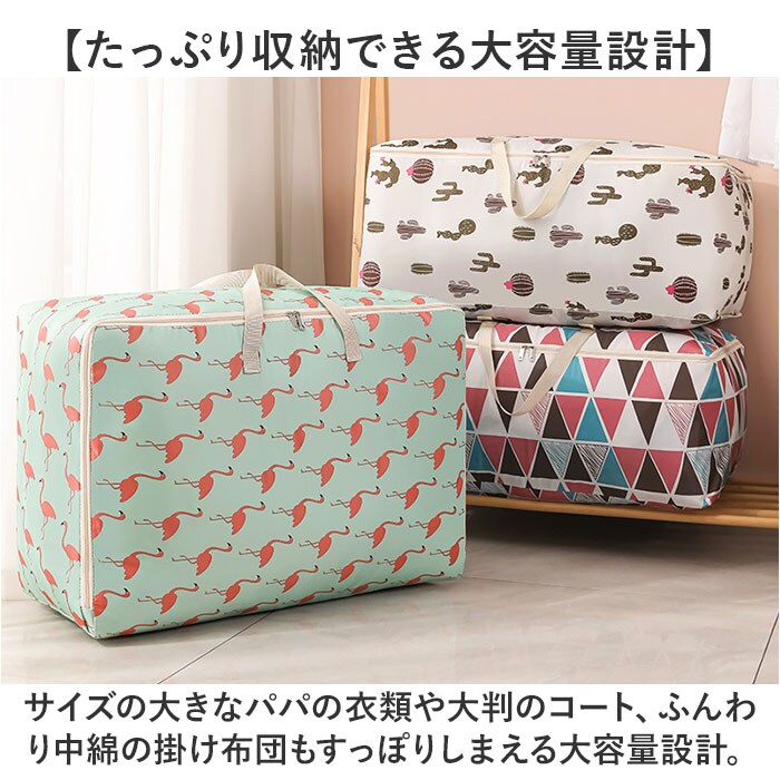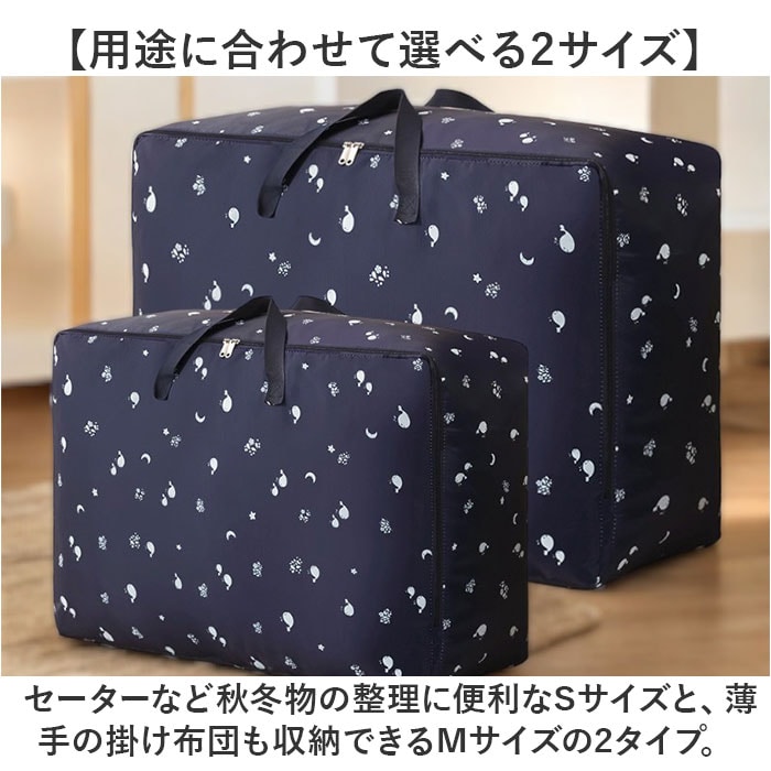 | 商品説明 | 【オフシーズンの衣類をすっきり収納】かさばる秋冬物の衣類やオフシーズンの毛布の保管に便利♪バッグ型で持ちやすい「衣類収納ケース」【ガバッと開いて、出し入れスムーズ】前面がコの字型に開くダブルファスナー仕様。スーツケースみたいに広げれば出し入れスムーズ。【たっぷり収納できる大容量設計】サイズの大きなパパの衣類や大判のコート、ふんわり中綿の掛け布団もすっぽりしまえる大容量設計。【積み重ねて、すっきりクローゼット】衣類や寝具を形を整えながらしまうことで、同じサイズのケースを積み重ねてすっきりと収納可能。【水濡れに強いリップストップ生地】丈夫で切り裂きに強いリップストップ生地を使用。水濡れにも強く、大切な衣装の収納に最適。※水滴をサッと弾くはっ水加工が施されておりますが、完全防水仕様ではありません。【バッグみたいに楽ラク持ち運び】ケース両サイドにはバッグのような持ち手付き。クローゼットから引き出す時や持ち運び時に便利。【用途に合わせて選べる2サイズ】セーターなど秋冬物の整理に便利なSサイズと、薄手の掛け布団も収納できるMサイズの2タイプ。【トラベル用のサブバッグにも】旅行先で買い求めたたくさんのお土産を持ち帰る時など、旅行用のサブバッグとしても大活躍!【衣替えが楽しくなる絵柄デザイン】衣替えの季節は、衣類の整理をお子さまと一緒に楽しく♪可愛らしくて楽しい絵柄をラインナップ。 |