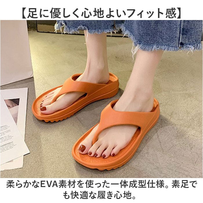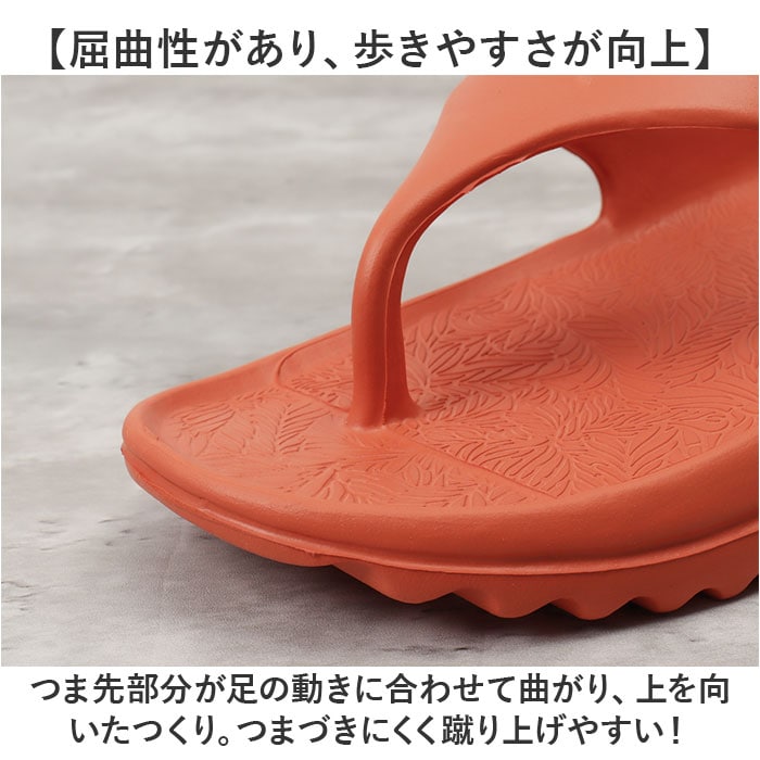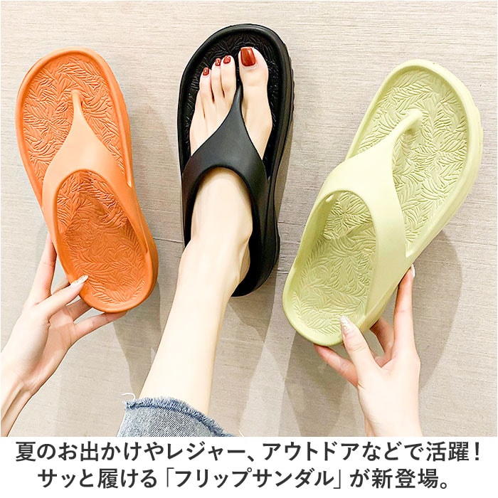 | 商品説明 | 夏のお出かけやレジャー、アウトドアなどで活躍!サッと履ける「フリップサンダル」が新登場。【ラフで涼しげなトングタイプ】つま先部分が下駄の鼻緒のようなフォルム。足の甲を覆わず圧迫感がないので、通気性も抜群。【履き心地軽やかでストレスフリー】足に負担がかかりにくい軽量設計。長時間履いていても疲れにくいのが嬉しい◎【足に優しく心地よいフィット感】柔らかなEVA素材を使った一体成型仕様。素足でも快適な履き心地。【雨の日も夏のレジャーでも】水に強く、プールや海水浴などのレジャーシーンではビーチサンダルとして♪【足裏を受け止めるインソール】足にかかる負担を軽減する、低反発のソフトインソール。表面の柄もおしゃれ☆【屈曲性があり、歩きやすさが向上】つま先部分が足の動きに合わせて曲がり、上を向いたつくり。つまづきにくく蹴り上げやすい!【衝撃を吸収し、安定感のあるソール】程よい厚みのソールが、足にかかる衝撃をガード。フラットで安定感のある歩行をサポート。【ギザギザ凹凸のアウトソール】滑りを抑えるアウトソール。安全面にも配慮◎【幅広いコーデに素敵にマッチ】スポーティースタイルや、デニムなどのカジュアルコーデにも!デイリーに使えるアイテム。【お揃いで履けるユニセックス仕様】シンプルなワンカラーで仕上げた、ジェンダーレスデザイン。仲良くお揃いにできるサイズ展開。 |