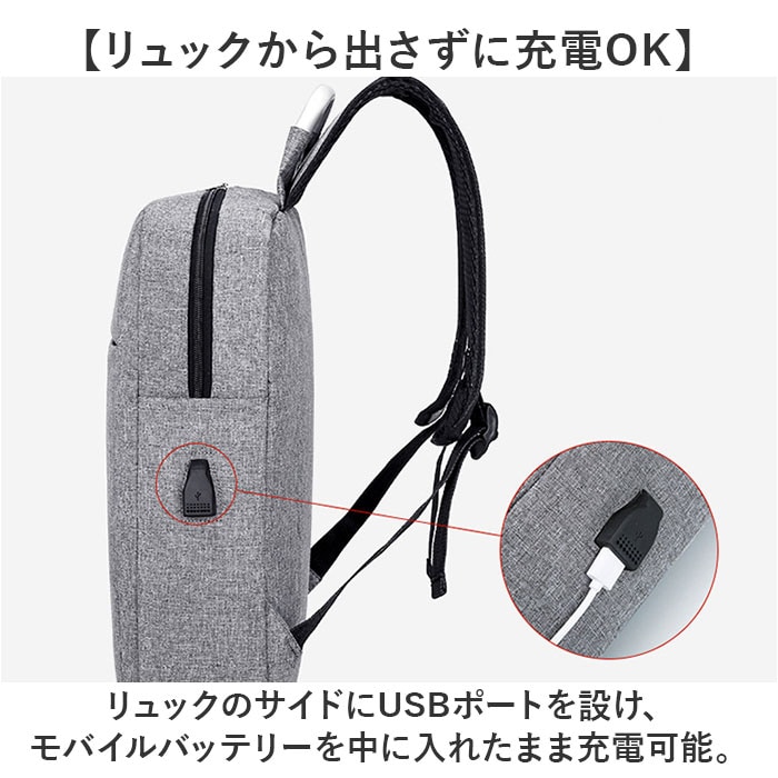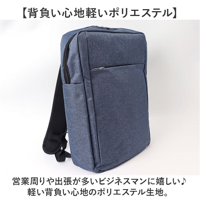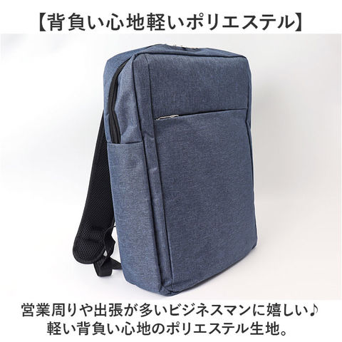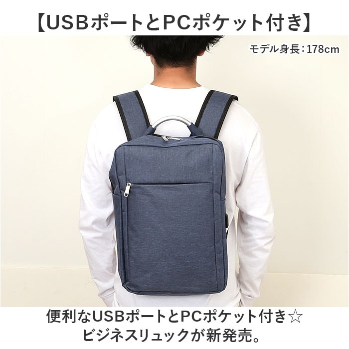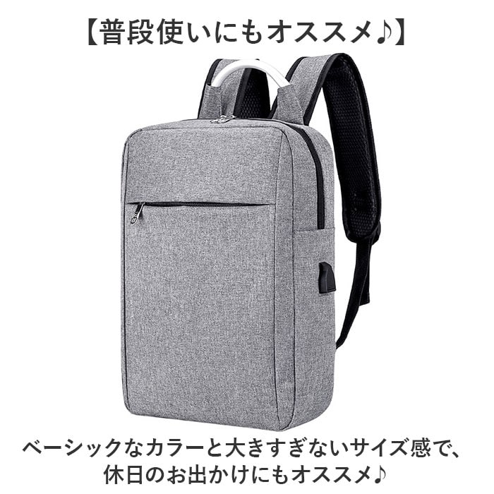 | 商品説明 | 【USBポートとPCポケット付き】便利なUSBポートとPCポケット付き☆ビジネスリュックが新発売。【背負い心地軽いポリエステル】営業周りや出張が多いビジネスマンに嬉しい♪軽い背負い心地のポリエステル生地。【通勤に必須なアイテムの収納に】メインルームはA4ファイルはもちろん、お弁当箱やポーチなど通勤に必要なアイテムをIN♪【タブレットやノートPC収納に】内装ポケットにクッションを内蔵し、ノートPCやタブレットを安全に持ち運び可能。【すぐに取り出したい小物入れに】フロントのファスナーポケットは手帳やミニケースなどサッと取り出したい小物入れに。【リュックから出さずに充電OK】リュックのサイドにUSBポートを設け、モバイルバッテリーを中に入れたまま充電可能。【持ち出しに便利なハンドル付き】リュックを下ろすときや、すぐに持ち出したいときに便利なハンドル付き。【普段使いにもオススメ♪】ベーシックなカラーと大きすぎないサイズ感で、休日のお出かけにもオススメ♪【ポケット仕様】メインルーム・・・PCポケット×1フロント・・・ファスナーポケット×1 |