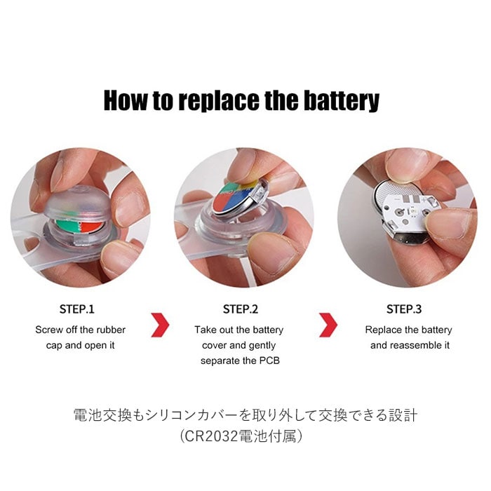 | 素材 | シリコン、LEDライト ※[付属品]CR2032電池1個 |
