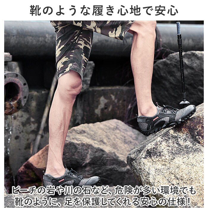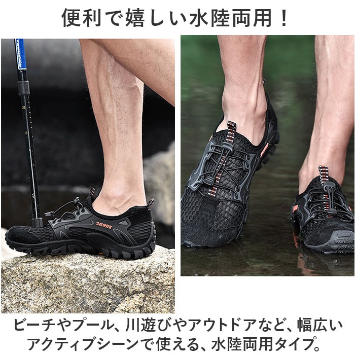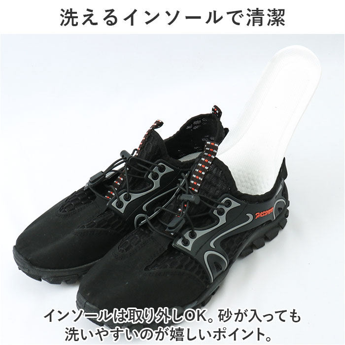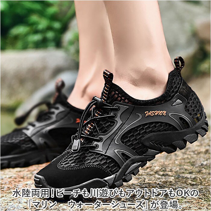 | 商品説明 | 水陸両用!ビーチも川遊びもアウトドアもOKの「マリン ウォーターシューズ」が登場。【便利で嬉しい水陸両用!】ビーチやプール、川遊びやアウトドアなど、幅広いアクティブシーンで使える、水陸両用タイプ。【靴のような履き心地で安心】ビーチの岩や川の石など、危険が多い環境でも靴のように、足を保護してくれる安心の仕様!【抜群の通気性&速乾性で快適】メッシュのアッパーは抜群の通気性でムレを防止。速乾性のある作りで濡れても乾きやすく快適♪【滑りにくく頑丈なアウトソール】アウトソールは頑丈な作りで滑りにくく、不安定な水の中でも足元をしっかりサポート!【アジャスターでぴったりフィット】ゴム仕様の靴紐をキュッと絞れるアジャスター付き。フィットするので動きやすい◎【洗えるインソールで清潔】インソールは取り外しOK。砂が入っても洗いやすいのが嬉しいポイント。【靴紐レスで手間なくラクチン】靴紐の結び直しが不要の紐レスタイプ。手間なくアクティブに履けるのがポイント。【タウンユースもできるおしゃれさ】マリンタイムだけでなく、タウンユースもできるシンプルなおしゃれさが魅力。 |