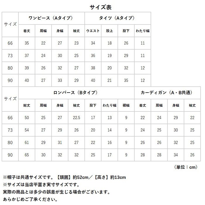 | サイズ | [ベビー] ・66cm ・73cm ・80cm ・90cm ※サイズについて詳細は、商品画像の中にあるサイズ表をご覧くださいませ。 |