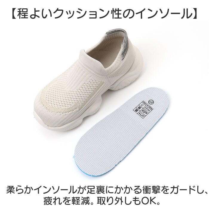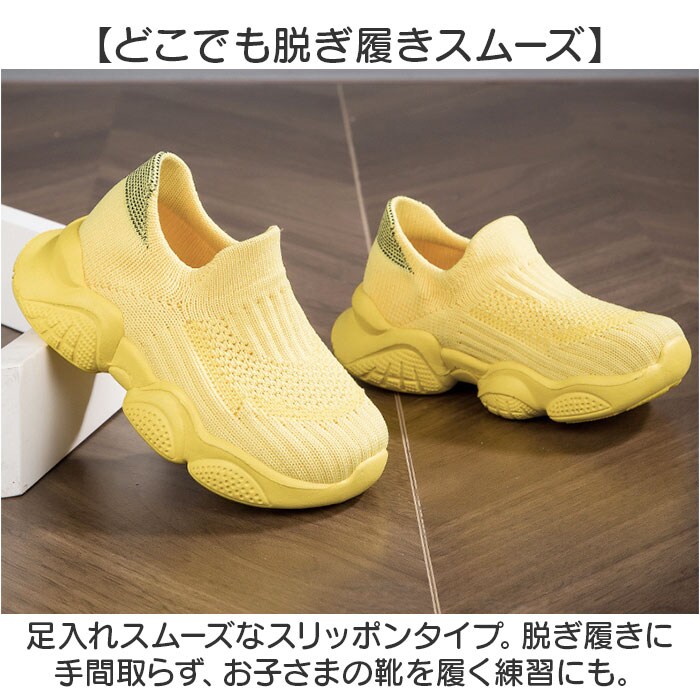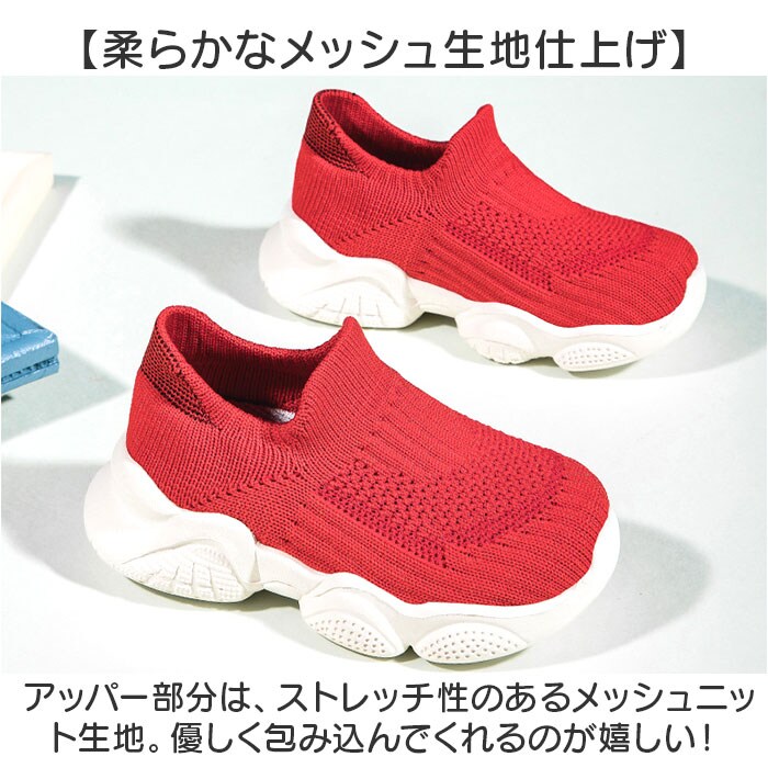 | 商品説明 | 【お出かけの相棒にぴったり】サッと履けてデイリー使いにぴったり。「キッズ用シューズ」が新登場。【柔らかなメッシュ生地仕上げ】アッパー部分は、ストレッチ性のあるメッシュニット生地。優しく包み込んでくれるのが嬉しい!【汗ばむ季節もサラッと快適】通気性に優れており、熱がこもりにくい!夏場でもムレにくいのがポイント。【軽やかな履き心地でノンストレス】足に負担がかかりにくい軽量なつくり。元気なお子さまの動きを妨げない!【どこでも脱ぎ履きスムーズ】足入れスムーズなスリッポンタイプ。脱ぎ履きに手間取らず、お子さまの靴を履く練習にも。【程よいクッション性のインソール】柔らかインソールが足裏にかかる衝撃をガードし、疲れを軽減。取り外しもOK。【屈曲性があり、歩きやすさが向上】つま先部分は、足の動きに合わせて柔軟に曲がる上向き形状。蹴り上げやすくつまずきにくい!【滑りにくく安定感のあるソール】底面に凹凸を施した滑りにくい仕様。安定した歩行をサポート。【兄弟・姉妹で可愛くお揃いに】男の子も女の子も履きやすいカラーをラインナップ。色違いで揃えてもキュート☆ |