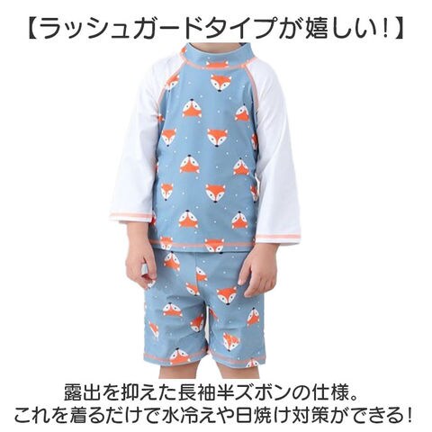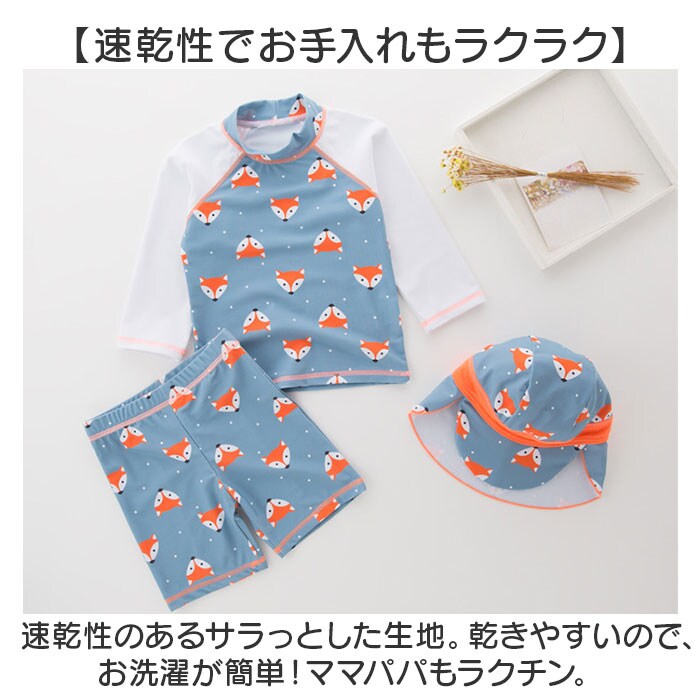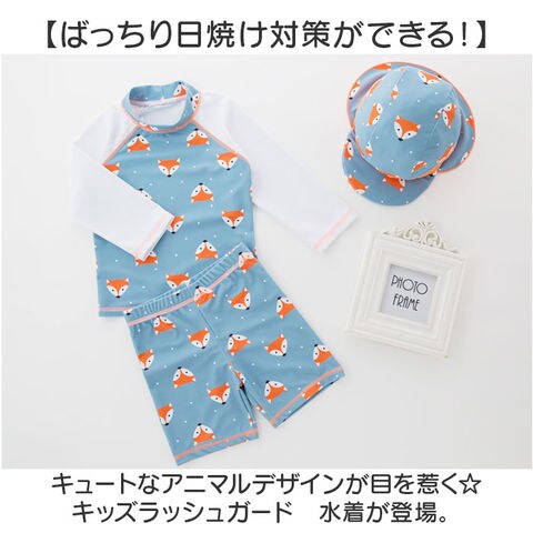 | 商品説明 | 【ばっちり日焼け対策ができる!】キュートなアニマルデザインが目を惹く☆キッズラッシュガード 水着が登場。【ラッシュガードタイプが嬉しい!】露出を抑えた長袖半ズボンの仕様。これを着るだけで水冷えや日焼け対策ができる!【ツバつき帽子でお顔もガード】水着と同じ素材のツバつき帽子で、熱さ対策も◎ネックガードつきなのも嬉しいポイント!【お子様もにっこりのアニマル柄♪】ほっこりキツネがキュート♪くすみカラーと夏っぽいビビットカラーで高バランスなデザイン☆【よく伸びる生地でストレスフリー】伸縮性に優れた生地を使用し、お子様の元気な動きを邪魔しない!ストレスフリーな着心地。【お洋服みたいに簡単お着替え】いつものお着替えと同様に着脱できるから、水遊び準備がスムーズに!トイレもラクチン。【速乾性でお手入れもラクラク】速乾性のあるサラっとした生地。乾きやすいので、お洗濯が簡単!ママパパもラクチン。 |