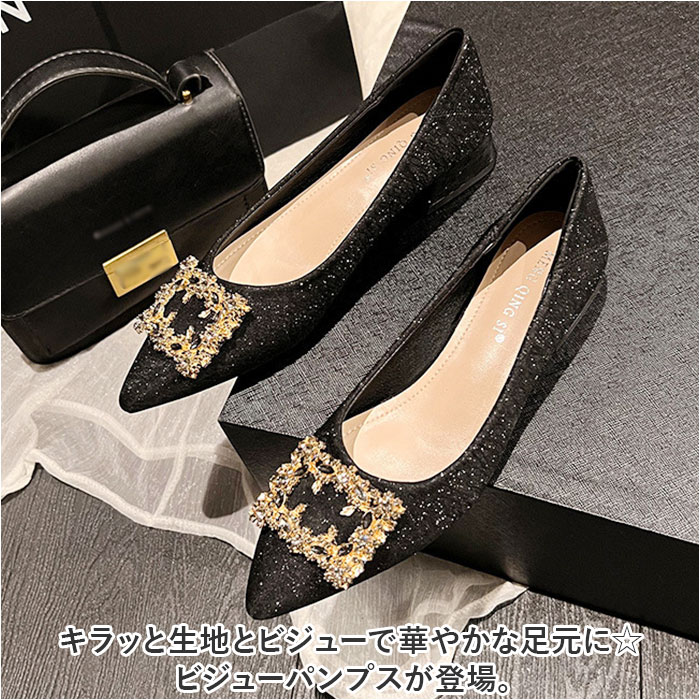 パンプス ビジュー pmy72212【ブラック】【39(24.5cm)】