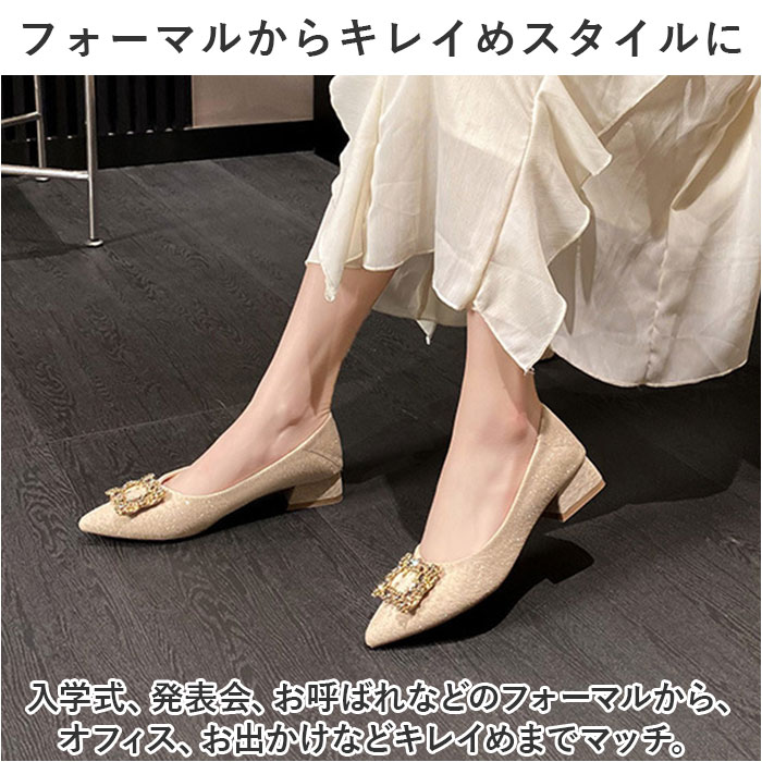 | 商品説明 | キラッと生地とビジューで華やかな足元に☆ビジューパンプスが登場。【キラッときらめく華やかさ☆】ビジューとキラッと輝く生地を使用した華やかなパンプス。シンプルで使いやすいデザイン。【楽々で歩きやすいチャンキーヒール】歩きやすいチャンキーヒールを採用。約3cmもないちょうど良い高さで、おしゃれなのに楽々。【足をキレイに魅せるシルエット】シャープなつま先とスクエアビジューの絶妙なバランス!足をスラっとキレイ魅せしてくれる♪【優しいクッションインソール】足裏に優しくフィットする、クッションインソール。負担を軽減してくれるので疲れにくい。【フォーマルからキレイめスタイルに】入学式、発表会、お呼ばれなどのフォーマルから、オフィス、お出かけなどキレイめまでマッチ。 |