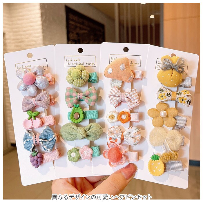 | 商品説明 | 色んな組み合わせを楽しめる♪赤ちゃん用のヘアピン5点セット。異なるデザインの可愛いヘアピンセット。ピン部分は布で覆われているから安心◎普段使いはもちろん、お誕生日などイベントの際のちょっとしたおめかしコーデにもぴったり。その日のコーデに合わせて替えたり、姉妹やお友だちとシェアしてもOK。 |