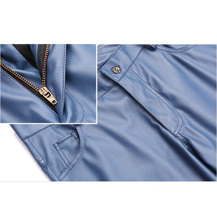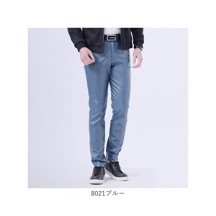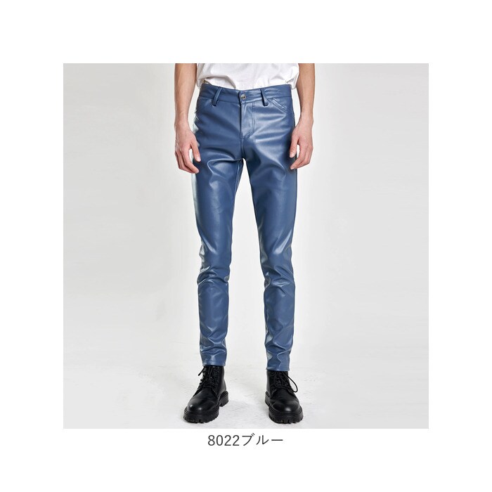 レザーパンツ スキニー メンズ【8022ブルー】【34サイズ】
