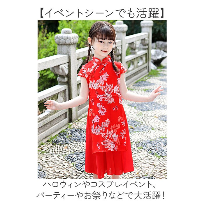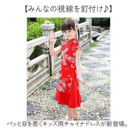 チャイナドレス 子供 コスプレ 文化祭 学園祭【レッド】【130(推奨身長120cm)】