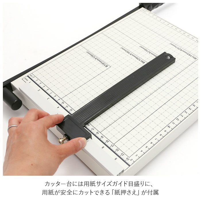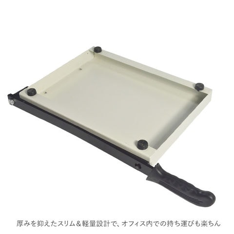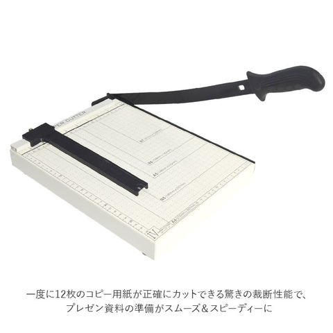 | 商品説明 | オフィスツールの定番、押し切り式ペーパーカッターがより使いやすくスマートになって新登場。B7サイズからA4サイズまで、お好みの用紙サイズに楽々カッティング!一度に12枚のコピー用紙が正確にカットできる驚きの裁断性能で、プレゼン資料の準備がスムーズ&スピーディーに。切断面に力が集中する「カーブ刃」が、軽い力でキレイにカットできる秘密。メンテナンスフリーのスティール刃が鋭い切れ味をキープし、毎日の事務作業がストレスフリー。使用しない時にはカッターハンドルをカッター台に固定できる、ロック機能付き。カッター台には用紙サイズガイド目盛りに、用紙が安全にカットできる「紙押さえ」が付属。厚みを抑えたスリム&軽量設計で、オフィス内での持ち運びも楽ちん。 |