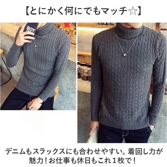 ニット セーター タートルネック【ダークグレー】【Lサイズ】