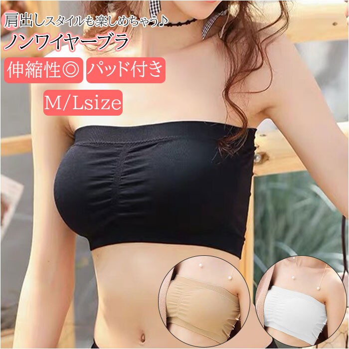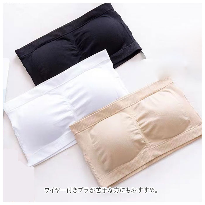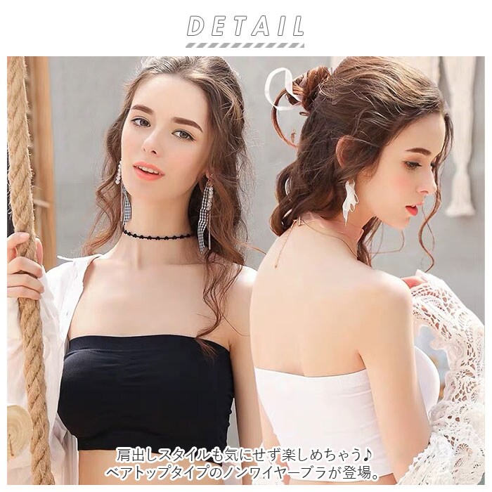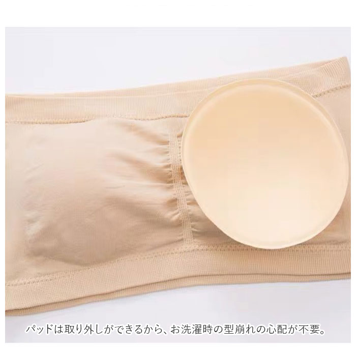 | 商品説明 | 肩出しスタイルも気にせず楽しめちゃう♪ベアトップタイプのノンワイヤーブラが登場。オフショルダーやチューブトップコーデに対応できる、ストラップレスブラ。締めつけ感のないノンワイヤー設計!伸縮性のある素材なので、身体に心地よくフィット。ホックなどがなく、頭からすっぽり被るだけで着脱ラクチン◎バストトップ、アンダーバスト部分はゴム仕様。跡が残りにくく、ズレにくいのもポイント。バストラインをキレイに整えてくれるパッド付き。パッドは取り外しができるから、お洗濯時の型崩れの心配が不要。ワイヤー付きブラが苦手な方にもおすすめ。 |