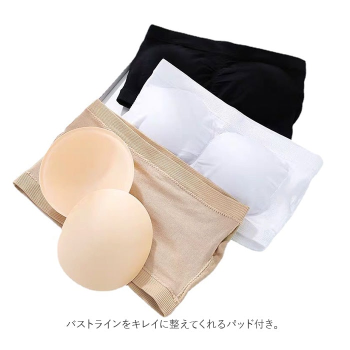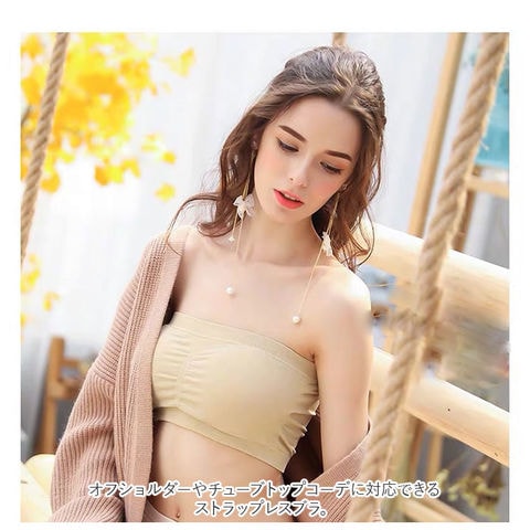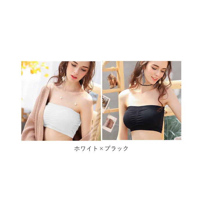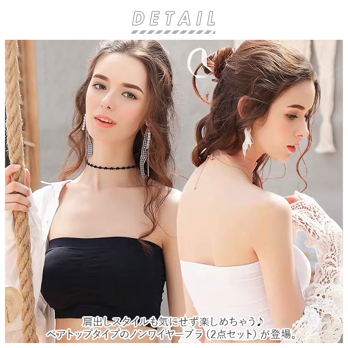 | 商品説明 | 肩出しスタイルも気にせず楽しめちゃう♪ベアトップタイプのノンワイヤーブラ(2点セット)が登場。オフショルダーやチューブトップコーデに対応できる、ストラップレスブラ。締めつけ感のないノンワイヤー設計!伸縮性のある素材なので、身体に心地よくフィット。ホックなどがなく、頭からすっぽり被るだけで着脱ラクチン◎バストトップ、アンダーバスト部分はゴム仕様。跡が残りにくく、ズレにくいのもポイント。バストラインをキレイに整えてくれるパッド付き。パッドは取り外しができるから、お洗濯時の型崩れの心配が不要。洗い替えにも便利な2点セット。ワイヤー付きブラが苦手な方にもおすすめ。 |
