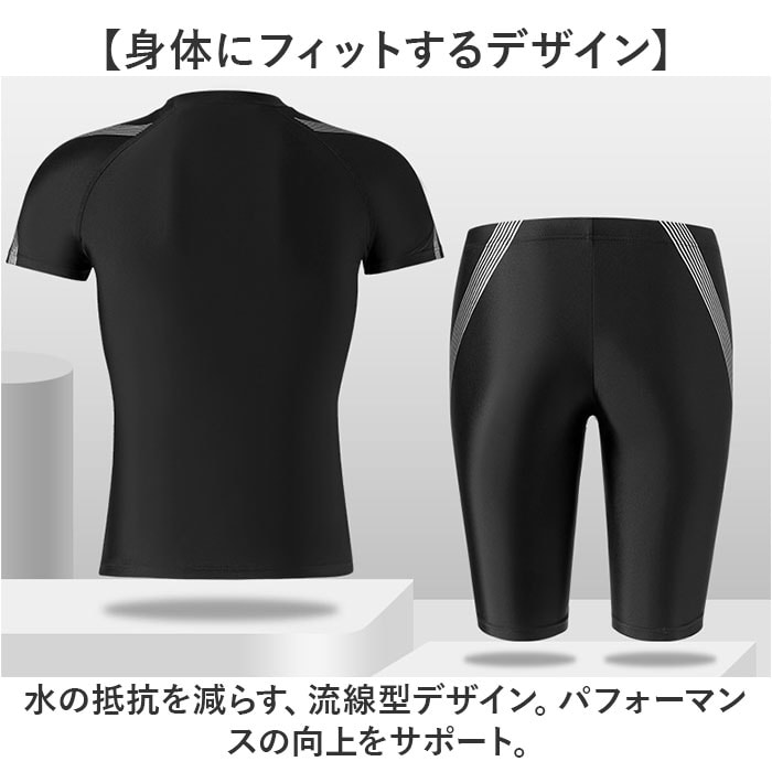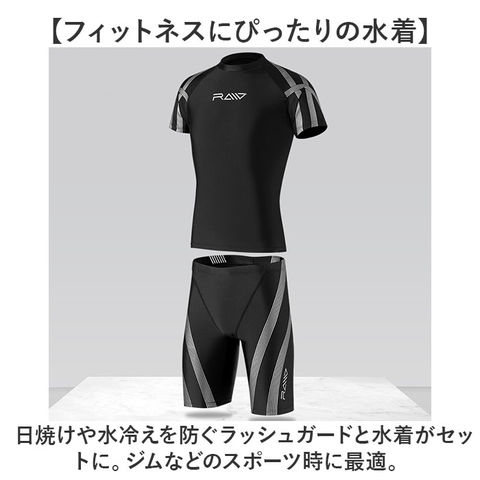 | 商品説明 | 【嬉しいセットアップアイテム☆】日焼けも水冷えも防ぐ、ラッシュガードつき!メンズ水着 上下セットが登場。【フィットネスにぴったりの水着】日焼けや水冷えを防ぐラッシュガードと水着がセットに。ジムなどのスポーツ時に最適。【よく伸びる生地でストレスフリー】伸縮性に優れた生地を使用し、アクティブな動きを邪魔しない!ストレスフリーな着心地。【裏地つきで肌触りもバツグン】パンツには裏地をプラス。優しい肌触りで、心地のよさポイント。【身体にフィットするデザイン】水の抵抗を減らす、流線型デザイン。パフォーマンスの向上をサポート。【ウエストゴム付きで安心】簡単にサイズを調節できる、ウエスト紐を搭載。たくさん動いても安心の仕様。 |