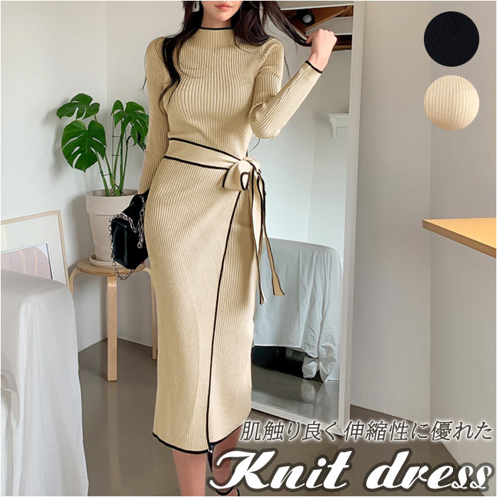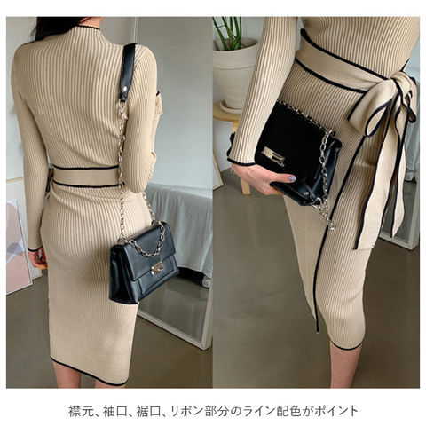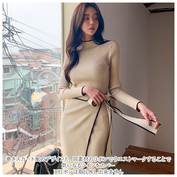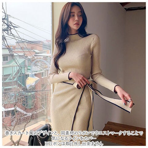 | 商品説明 | シンプルなのに1枚でおしゃれにキマル♪「ニットワンピース」が発売。女性らしいタイトなロングシルエットがすっきりとした印象に。肌触りの良い伸縮性に優れたリブニットを採用。襟元、袖口、裾口、リボン部分のライン配色がポイント。巻きスカート風のデザインと、同素材のリボンでウエストマークすることで気になるラインをカバー。(リボンは取り外し出来ません)普段着はもちろん、ちょっとしたお呼ばれにもシーンにも◎ |
