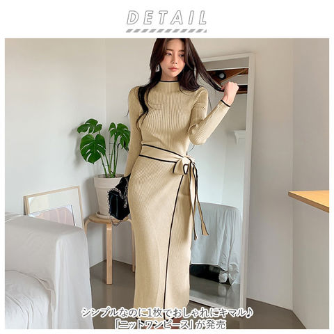 ニットワンピース pmy880304【ベージュ】