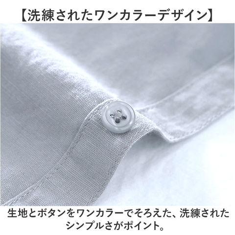 | 商品説明 | 【おしゃれなノーカラーデザイン♪】ナチュラルなコットンリネン素材が魅力の「綿麻シャツ メンズ 半袖」が登場。【風合いのある生地でナチュラルに】コットンと麻を混合した、サラッとした生地を使用。味わいのあるナチュラルな着こなしに♪【ノーカラーデザインで垢ぬける】ラフな印象をプラスしてくれる、ノーカラーデザイン。リラクシーな雰囲気で垢ぬけ♪【涼しい着心地で夏も快適に!】通気性に優れた生地は、汗をかいてもサラッと感をキープ。着心地にもこだわった1枚。【洗練されたワンカラーデザイン】生地とボタンをワンカラーでそろえた、洗練されたシンプルさがポイント。【着回しのきく定番カラー】ボトムスを選ばない、定番カラーのラインナップ。合わせやすいからたくさん着たくなる! |