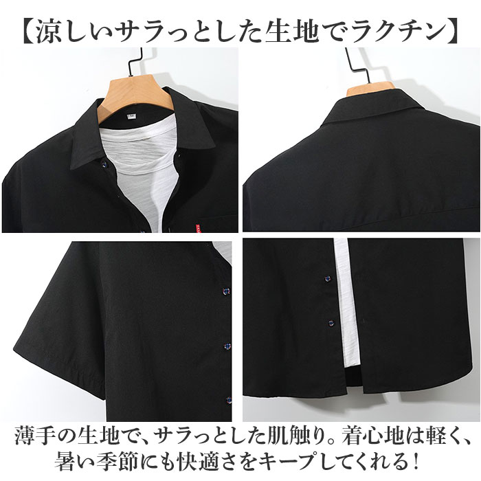シャツ 長袖 半袖 メンズ【半袖×ブラック】【Mサイズ】