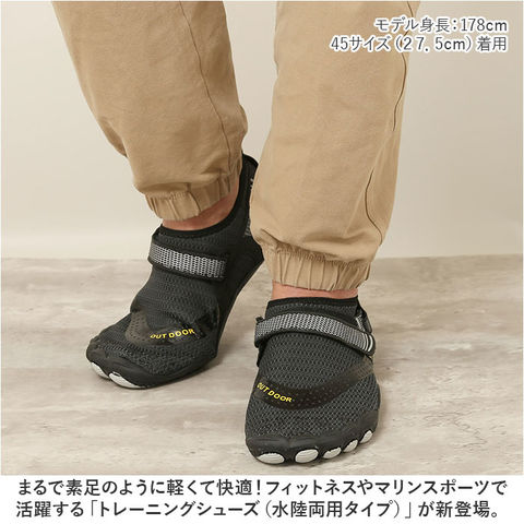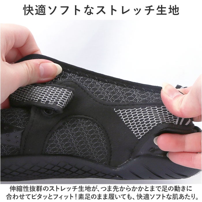 | 商品説明 | まるで素足のように軽くて快適!フィットネスやマリンスポーツで活躍する「トレーニングシューズ(水陸両用タイプ)」が新登場。【ふわっと軽快な履き心地】片足約160gの軽量設計(※1)。履いていることを忘れてしまうほどの軽い履き心地で、軽快なフットワークを実現。【快適ソフトなストレッチ生地】伸縮性抜群のストレッチ生地が、つま先からかかとまで足の動きに合わせてピタッとフィット!素足のまま履いても、快適ソフトな肌あたり。【通気性抜群のスポンジメッシュ】アッパー生地は、ソフトな感触と通気性を両立したスポンジメッシュ仕上げなので、真夏やスポーツ時の気になるムレ対策も万全。【衝撃吸収カップインソール】クッション性の高いEVAカップインソールが足裏にかかる衝撃を優しく吸収し、運動時の足元をしっかりとサポート。【脱ぎ履きスムーズ】伸縮性のある履き口にはつま先がスッと入って、運動前の装着がスムーズ。シューズ正面とサイド2ヶ所の面ファスナーベルトでサイズ調整も自在。【水中・陸上でマルチに活躍】水の中にシューズのまま入っても、スポンジメッシュが水を通し、ソールの排水孔からも水が抜けるため、早く乾いて快適さをキープ。【滑りにくいアウトソール】つま先に足指の凹凸を再現したアウトソールが、素足のように地面をグリップ。滑り止めの溝がしっかりと刻まれているので、安定感もばっちり。【スリム&コンパクトに持ち運び】アウトソールには屈曲性があり、キュッと丸めてコンパクトに収納可能。フィットネスジムへの持ち運びもスマートに。【お手入れ簡単、いつでも清潔】カップインソールは取り外しができるので、手軽に水洗いができていつでも清潔さをキープ。【クールなユニセックスカラー】足元で眩しく映えるネオンカラーからベーシックカラーまで、性別や世代を超えて履きやすいユニセックスカラー。調整ベルトのハニカムパターンがパッと目を惹くアクセント。 |