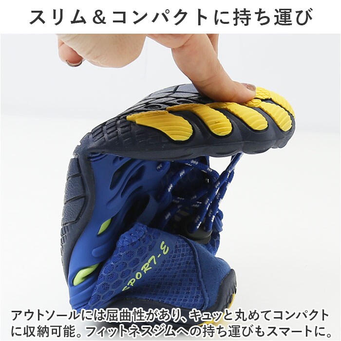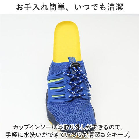 | 商品説明 | まるで素足のように軽くて快適!フィットネスやマリンスポーツで活躍する「トレーニングシューズ(水陸両用タイプ)」が新登場。【ふわっと軽快な履き心地】片足約175gの軽量設計(※1)。履いていることを忘れてしまうほどの軽い履き心地で、軽快なフットワークを実現。【快適ソフトなストレッチ生地】伸縮性抜群のストレッチ生地が、つま先からかかとまで足の動きに合わせてピタッとフィット!素足のまま履いても、快適ソフトな肌あたり。【通気性抜群のスポンジメッシュ】アッパー生地は、ソフトな感触と通気性を両立したスポンジメッシュ仕上げなので、真夏やスポーツ時の気になるムレ対策も万全。【衝撃吸収カップインソール】クッション性の高いカップインソールが足裏にかかる衝撃を優しく吸収し、運動時の足元をしっかりとサポート。【靴ヒモを結ばず、ワンタッチ調整】靴ヒモを引っ張ってぴったりサイズに調整後、コードストッパーでキュッと留めるだけで、ヒモを結ばずにワンタッチ調整が可能!【水中・陸上でマルチに活躍】水の中にシューズのまま入っても、スポンジメッシュが水を通し、ソールの排水孔からも水が抜けるため、早く乾いて快適さをキープ。【スリム&コンパクトに持ち運び】アウトソールには屈曲性があり、キュッと丸めてコンパクトに収納可能。フィットネスジムへの持ち運びもスマートに。【お手入れ簡単、いつでも清潔】カップインソールは取り外しができるので、手軽に水洗いができていつでも清潔さをキープ。【キラリと光るリフレクター】履き口のプルタブに自動車のライトを反射するリフレクター素材のラインを配置しているため、夜間のランニングでも安全。【スポーツやアウトドアに最適】ジムでのトレーニングやランニングなどのフィットネスにはもちろん、サーフィンのような水辺のアクティビティーではマリンシューズとして大活躍。【クールなユニセックスカラー】フィットネスウェアの足元で眩しく映える、シルバー&ネオンカラーのサイドラインがアクセント。カップルやご家族でリンクコーデがキマるユニセックスデザイン。 |