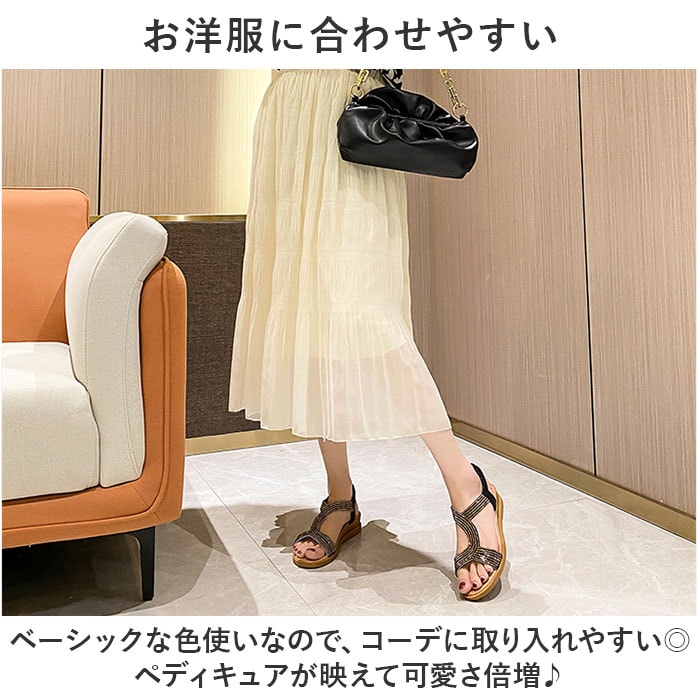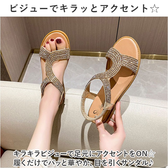 サンダル レディース ビジュー pmya122【ベージュ】【39(24.5cm)】