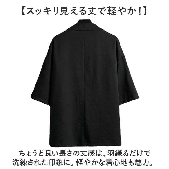 サマージャケット メンズ 7分袖【ブラック】【L】