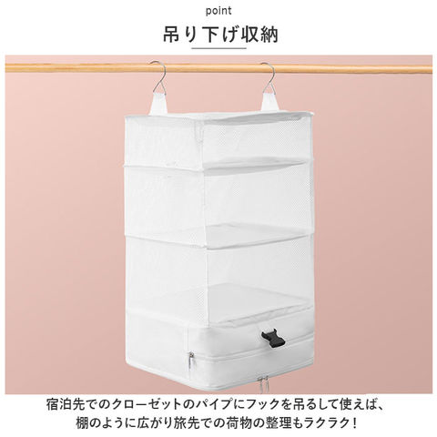 | 商品説明 | 旅行や出張で必要な衣類などをコンパクトにまとめて収納♪圧縮バッグが登場。【4段収納】上部は3層に分かれたメッシュ仕様の収納ルーム。最下段はファスナー付きの収納ルームなのでシューズケースやランドリー用におすすめ。【オープンポケット付き】最上段にオープンポケットが2つ付いており、洗面用品など細かい物も分けて収納可能!【圧縮収納】アコーディオンのような形になっていて、バックルベルトを留めれば圧縮されてコンパクトに♪【コンパクト収納】使わないときは最下段底のファスナーを開きひっくり返して収納すればコンパクトに♪持ち手も付いており持ち運びしやすい◎【吊り下げ収納】宿泊先でのクローゼットのパイプにフックを吊るして使えば、棚のように広がり旅先での荷物の整理もラクラク!【荷物をひとまとめ】トランクケースやキャリーバッグの中でごちゃつかず、簡単に荷物をスッキリひとまとめ。バッグ一つで上着からボトムスまで収納できる優れもの! |