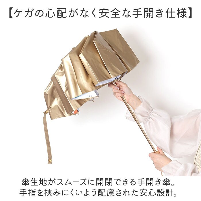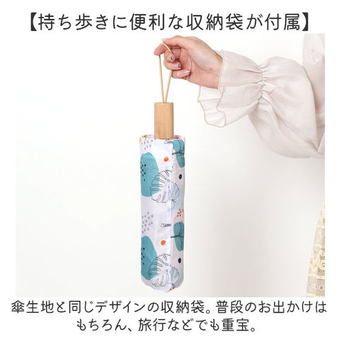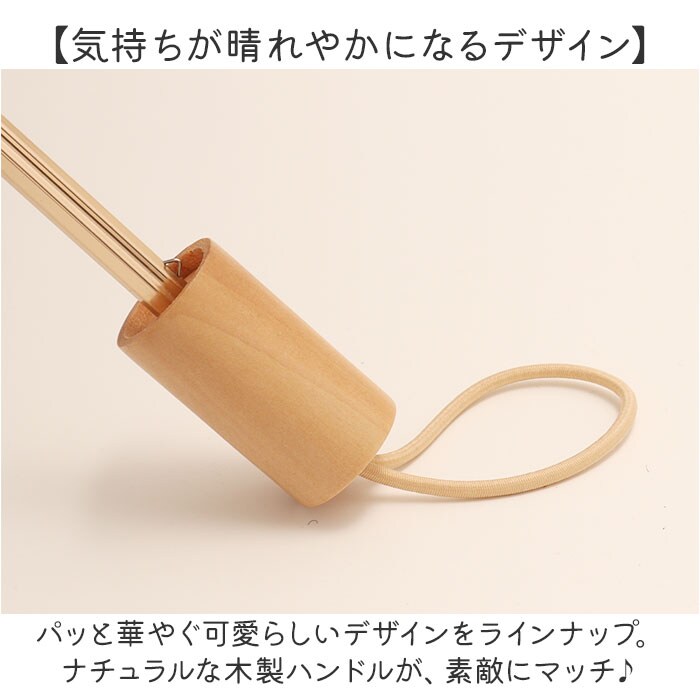 | 商品説明 | 【お出かけの頼れる相棒に♪】晴れの日も雨の日も使える兼用タイプ。使い勝手ばっちりな「折りたたみ傘」が新登場。【暑い季節の気になる日差しをガード】直射日光から守って日焼けを防止し、眩しさを軽減。熱中症対策にも効果的。【お天気が不安定な日にも対応】撥水力もあり、ちょっとの雨なら大丈夫。お天気の急変にも慌てない!【ケガの心配がなく安全な手開き仕様】傘生地がスムーズに開閉できる手開き傘。手指を挟みにくいよう配慮された安心設計。【サクッと留められるボタン式バンド】傘生地を留めるバンドは、バチンっと留めやすいスナップボタン式。【持ち歩きに便利な収納袋が付属】傘生地と同じデザインの収納袋。普段のお出かけはもちろん、旅行などでも重宝。【気持ちが晴れやかになるデザイン】パッと華やぐ可愛らしいデザインをラインナップ。ナチュラルな木製ハンドルが、素敵にマッチ♪ |