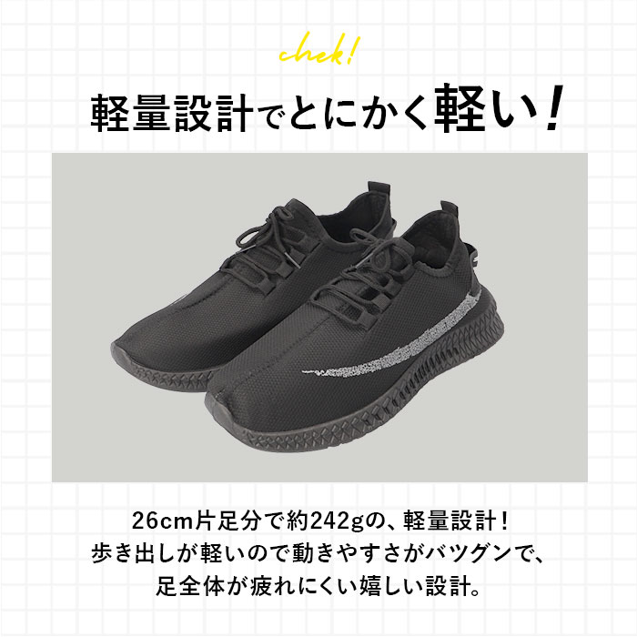 | 商品説明 | アクティブに動けてデイリー使いにぴったりな、スニーカーが新登場。【メッシュ仕様で軽い履き心地】アッパー部分はメッシュ仕様になっており、通気性バツグン!汗をかくスポーツシーンでもムレにくく快適◎【やわらか素材】足にフィットする、柔らかな素材を使用。靴紐をキュッと締めれば更にフィット感がアップ!【足入れがスムーズ】かかとにはプルタブ付き。紐を結んだ状態でも足入れラクラク。【滑りにくいアウトソール】屈曲性抜群のアウトソール。靴裏には滑りにくいよう加工を施し、歩きやすさ、動きやすさに配慮。【持ち運びしやすいフラット形状】靴を履いていない時はフラットになるので、バッグに入れてもかさばらず持ち運びしやすい!【使用シーンいろいろ】シンプルでスタイリッシュなデザイン。普段使いはもちろん、スポーツ、アウトドア、レジャー、旅行など幅広く使える! |