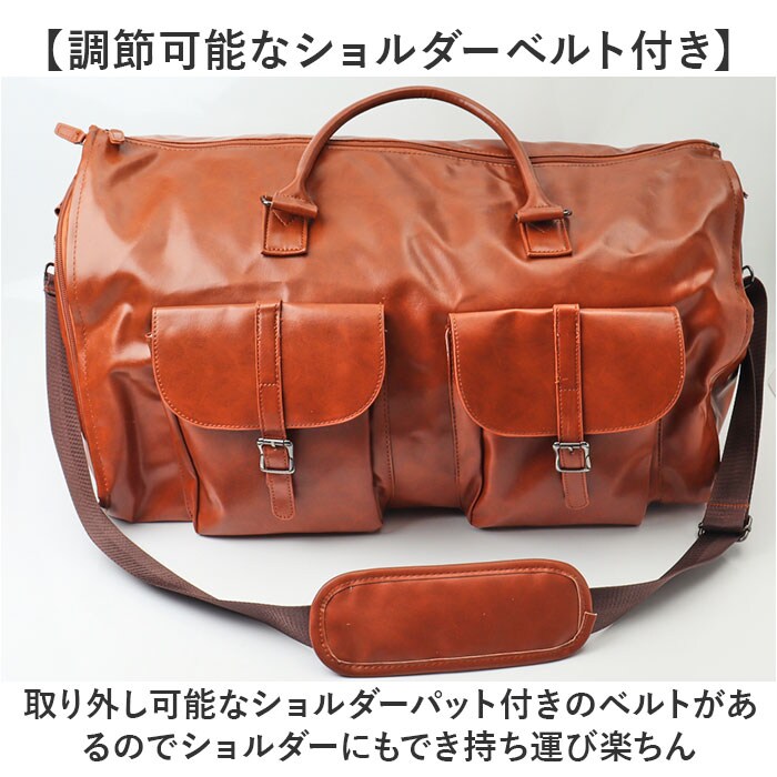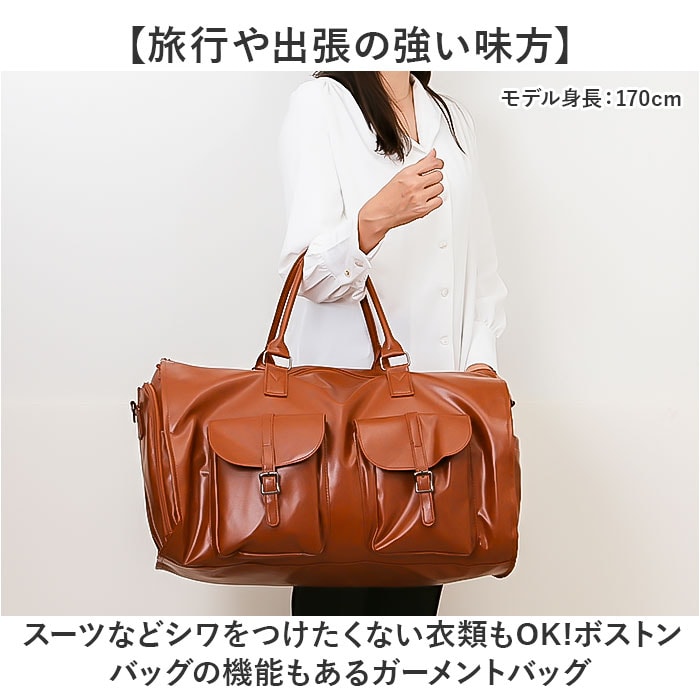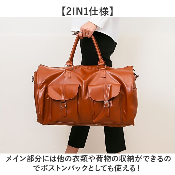 | 商品説明 | 【旅行や出張の強い味方】スーツなどシワをつけたくない衣類もOK!ボストンバッグの機能もあるガーメントバッグ【2IN1仕様】メイン部分には他の衣類や荷物の収納ができるのでボストンバックとしても使える!【ハンガーのまま収納OK】ハンガーフックを通すループ付きなので、スーツやドレスなどをハンガーのまま収納OK【靴専用スペースあり】外側から収納できる靴専用のスペースあり。他の荷物を汚すことなく靴を収納できる独立設計。【便利なポケットがたくさん】内側にはネクタイや下着、靴下など、ゴチャつきがちな小物を収納できるポケット付き。【すぐに取り出したい小物入れに】外側にスマホやカードケースなどすぐに取り出したい小物入れに最適なポケットを複数配置。【調節可能なショルダーベルト付き】取り外し可能なショルダーパット付きのベルトがあるのでショルダーにもでき持ち運び楽ちん【キャリーケースに付けられる】キャリーオンベルト付きで、キャリーケースと一緒に運べるのも嬉しいポイント。【折り畳んで収納可能】柔らかい生地でできており、使わない時は折り畳んでクローゼットなどの収納に気軽にIN【ポケット仕様】メインルーム・・・洋服収納×1、ファスナーポケット×3、オープンポケット×2フロント・・・フラップポケット2左サイド・・・靴収納×1右サイド・・・ファスナーポケット×1 |