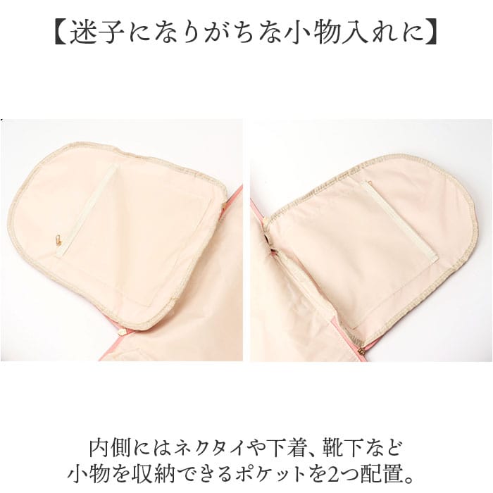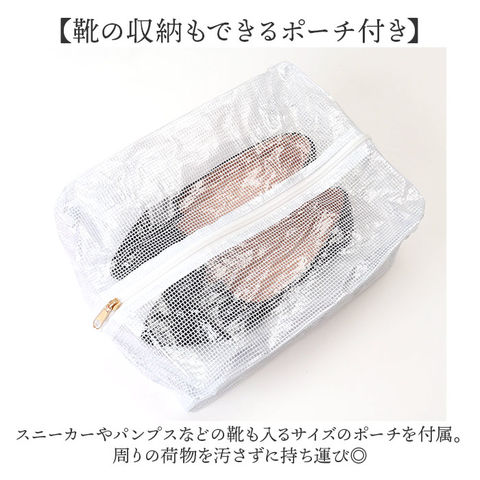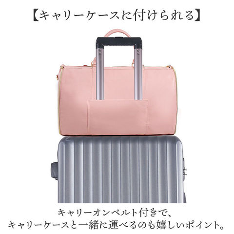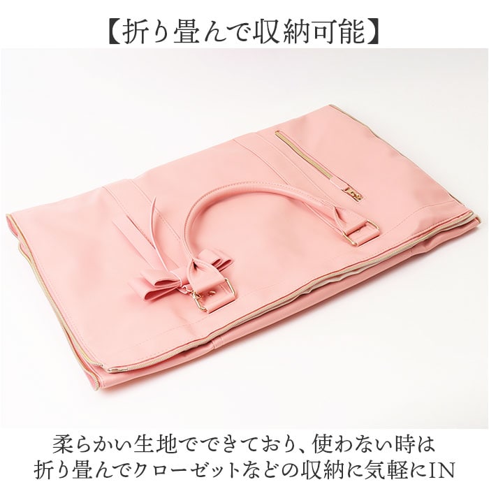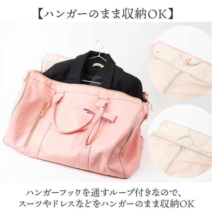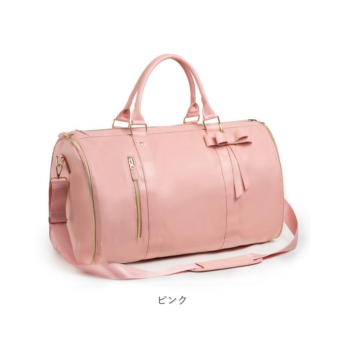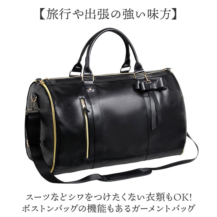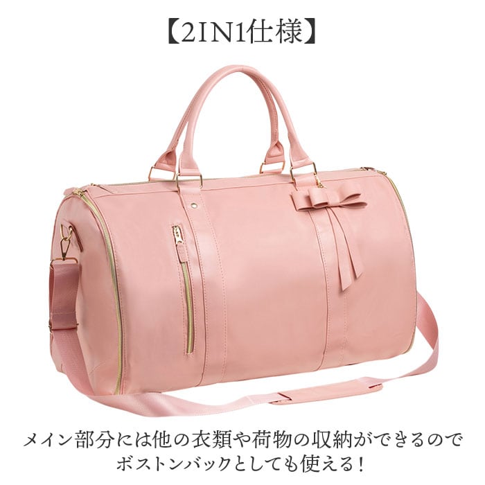 | 商品説明 | 【旅行や出張の強い味方】スーツなどシワをつけたくない衣類もOK!ボストンバッグの機能もあるガーメントバッグ【2IN1仕様】メイン部分には他の衣類や荷物の収納ができるのでボストンバックとしても使える!【ハンガーのまま収納OK】ハンガーフックを通すループ付きなので、スーツやドレスなどをハンガーのまま収納OK【迷子になりがちな小物入れに】内側にはネクタイや下着、靴下など小物を収納できるポケットを2つ配置。【靴の収納もできるポーチ付き】スニーカーやパンプスなどの靴も入るサイズのポーチを付属。周りの荷物を汚さずに持ち運び◎【調節可能なショルダーベルト付き】取り外し可能なショルダーパット付きのベルトがあるのでショルダーにもでき持ち運び楽ちん【キャリーケースに付けられる】キャリーオンベルト付きで、キャリーケースと一緒に運べるのも嬉しいポイント。【可愛いリボンのモチーフ】ハンドルの持ち手に可愛いリボンのモチーフ付き。ナスカンで取り外し可能。【折り畳んで収納可能】柔らかい生地でできており、使わない時は折り畳んでクローゼットなどの収納に気軽にIN【ポケット仕様】メインルーム・・・洋服収納×1、ファスナーポケット×2フロント・・・ファスナーポケット×1 |