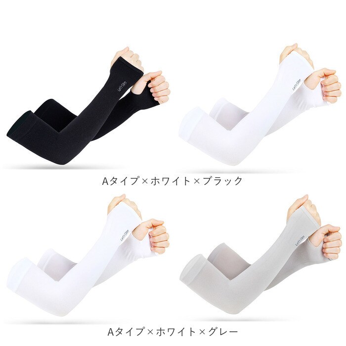 アームカバー 2タイプ 4枚入り pmyarm09【Aタイプ×ホワイト×ブラック】