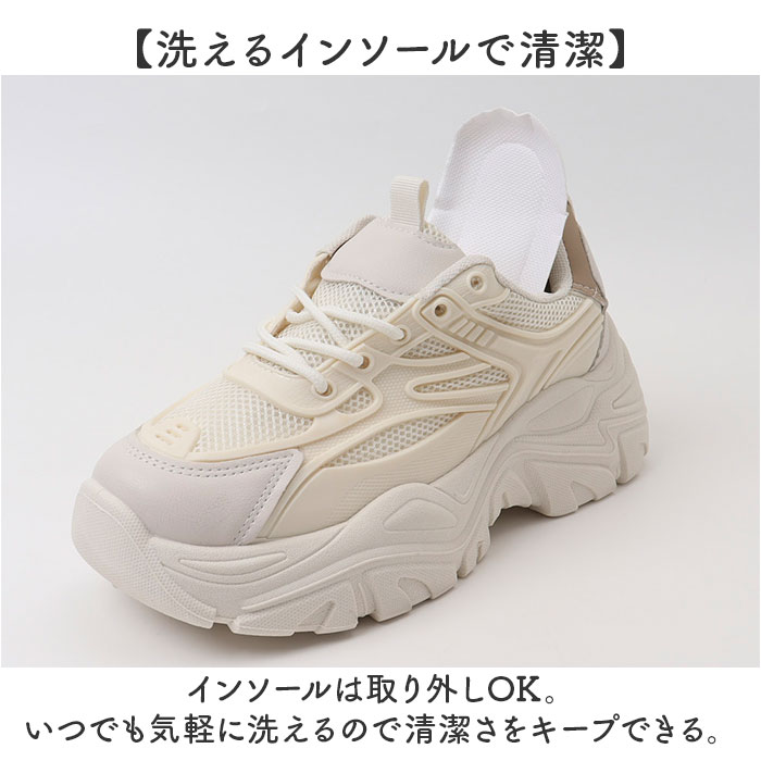 | 商品説明 | 【カラーが映える!絶妙デザイン☆】ガッツリ厚底5.5センチがおしゃれ! 厚底スニーカー レディースが登場。【オールホワイト×カラー紐】オフホワイトで仕上げたダッドスニーカーに、カラー紐のアクセント!THE映えるスニーカー☆【ボリューム感が今っぽい☆】約5.5センチのボリューミーなシルエットがトレンド!いつものコーデがグッと今っぽくなる♪【スラっと美脚魅せを叶える!】身長UP&足をキレイに長く見せてくれる!履くだけでスタイルアップできるのがポイント。【脱ぎ履きがラクチン】前後にタブを採用し、脱ぎ履きのしやすさに配慮。お出かけ先でもスムーズで快適に。【滑りにくいので雨の日も安心】ソール部分は凸凹加工済み。雨の日の地面もしっかりグリップする、滑りにくい安心仕様。【洗えるインソールで清潔】インソールは取り外しOK。いつでも気軽に洗えるので清潔さをキープできる。【気分に合わせて靴紐をチェンジ】カラー紐やホワイト紐は付け外しOK。もちろん、他の紐に変えてもGOOD◎楽しみ方いろいろ♪ |