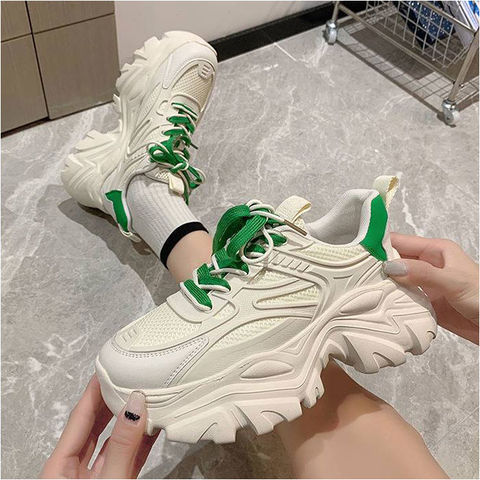 スニーカー レディース 厚底【グリーン】【39(23.5cm)】