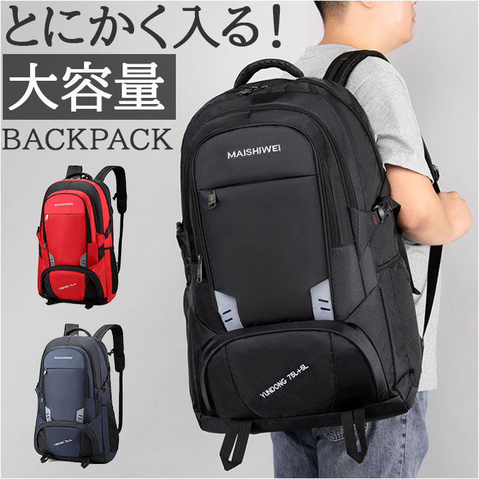 | 商品説明 | とにかくザクザク入る!嬉しいBIGサイズの、バックパックが登場。【とにかく入る!BIGサイズ】縦が約65cmと、必要なモノをザクザク収納ができるBIGサイズのアイテム。普段使いはもちろん、旅行の荷物も余裕で入る安心の大容量◎【撥水加工◎】バッグの表生地には撥水加工を施しているので、突然の雨でも安心。汚れに強いのも嬉しいポイント。※完全防水ではありません。【ガバっと開くファスナー】メインルーム、サブルームともにガバっと開くファスナー仕様。バッグ内が良く見えるので、必要なモノの出し入れがスムーズ!【持ちやすい】ショルダー部分と背面にはクッションを搭載。前面にはチェストベルトとウエストベルトがプラスされ、重たい荷物も負担が少なく運べるよう配慮。【シューズルームを搭載】独立した作りが嬉しい、シューズルームを搭載。他の荷物と分けて収納できるので、靴以外のモノを入れるのもGOOD。【ポケット多数】小物を収納できるポケットや、両サイドには水筒や折傘などの収納にぴったりなオープンポケットを。機能性をUPしてくれるポケットがたくさん◎【様々な活躍シーン】通勤通学だけでなく、荷物が多くなる登山やキャンプ、トレッキングや旅行にも最適。防災リュックとしてもGOOD!【シンプルデザイン】性別年齢を問わない、シンプルでスタイリッシュなデザイン。カップルや家族、友達と共有もできる。【ポケット仕様】メイン収納:オープンポケット×1サブ収納:ポケットなしサイド部分:オープンポケット×2フロント部分:ファスナーポケット×1、シューズルーム×1 |