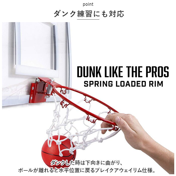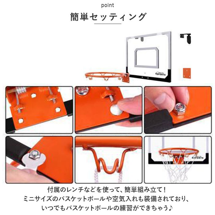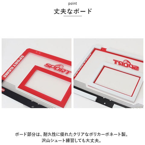 | 商品説明 | お部屋のドアに引っ掛けて使える!バスケットゴールセットが登場。【簡単セッティング】付属のレンチなどを使って、簡単組み立て!ミニサイズのバスケットボールや空気入れも装備されており、いつでもバスケットボールの練習ができちゃう♪【丈夫なボード】ボード部分は、耐久性に優れたクリアなポリカーボネート製。沢山シュート練習しても大丈夫。【ダンク練習にも対応】ダンクした時は下向きに曲がり、ボールが離れると水平位置に戻るブレイクアウェイリム仕様。【雨の日やストレス解消にも】雨が降って屋外で遊べない日も、家族や友人と一緒に室内で楽しめる!ゴールを決めれば、気分もスッキリ☆ |