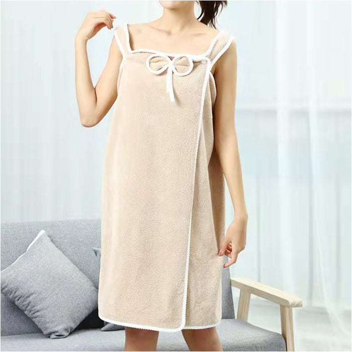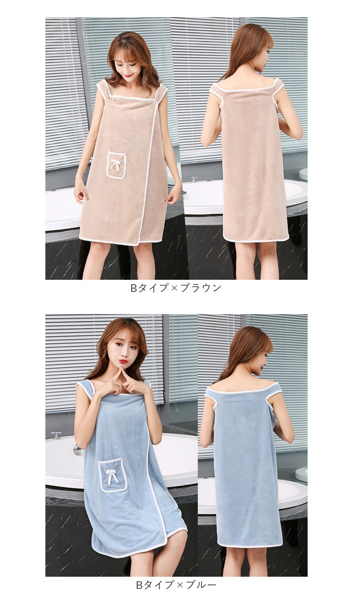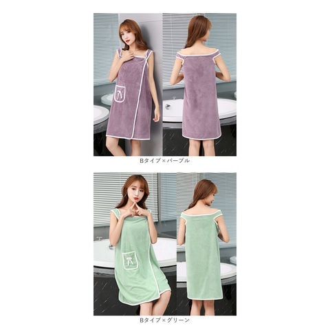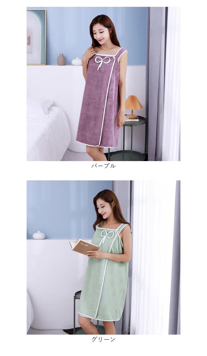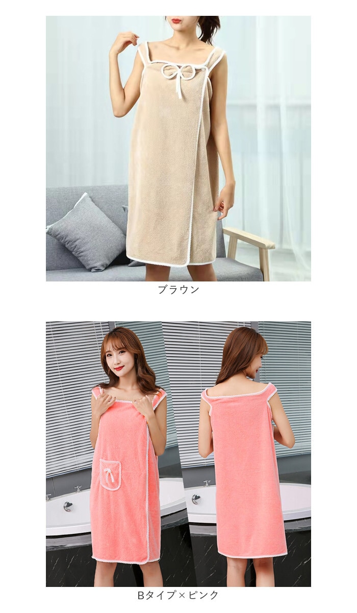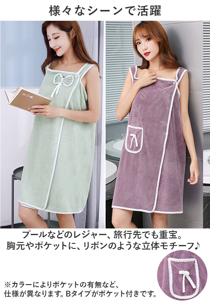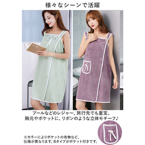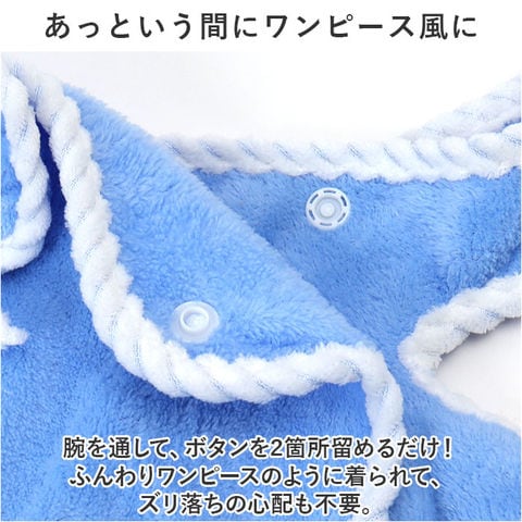 | 商品説明 | お風呂上がりを快適に♪サッと”着られる”タオルが登場。【あっという間にワンピース風に】腕を通して、ボタンを2箇所留めるだけ!ふんわりワンピースのように着られて、ズリ落ちの心配も不要。【手軽に使えて便利】バタバタしがちなお風呂上がりに、サッと着用OK。湯冷めや汗のべたつきを防ぎ、とっても快適◎【吸水速乾性のあるふんわり素材】柔らかくお肌に優しい素材を使用。水気や汗を素早く吸収し、乾きが早いのも嬉しいポイント。【程よいボリューム感】薄すぎず厚すぎない生地感で、使い勝手抜群。体を優しく包みこんで、バスタイム後もリラックス♪【様々なシーンで活躍】プールなどのレジャー、旅行先でも重宝。胸元のリボンのような立体モチーフがワンポイントに。 |