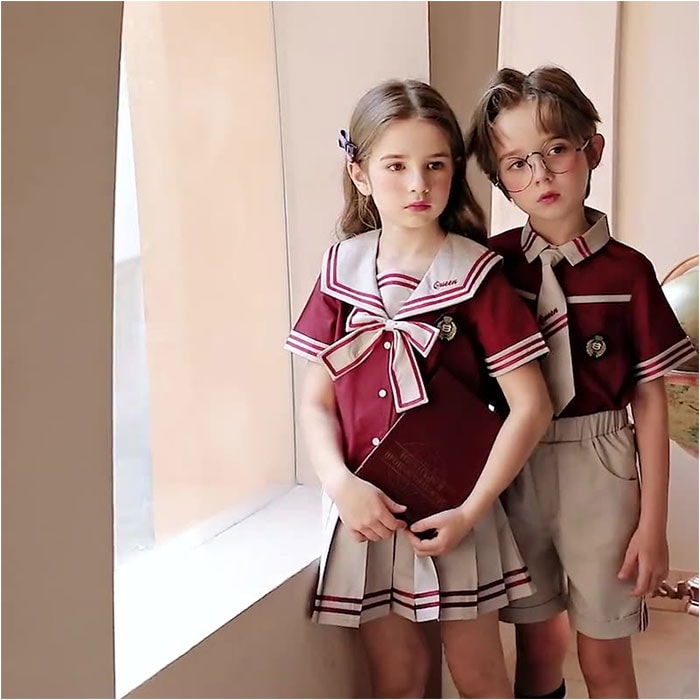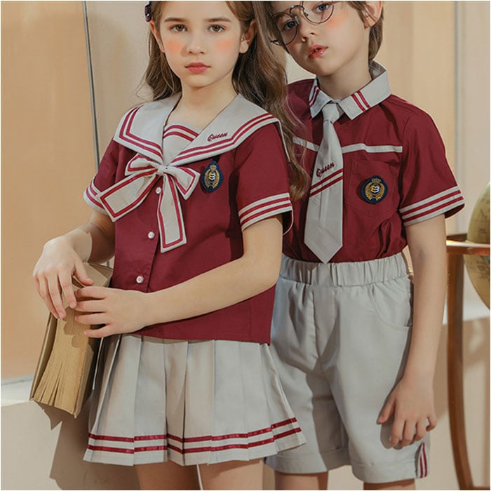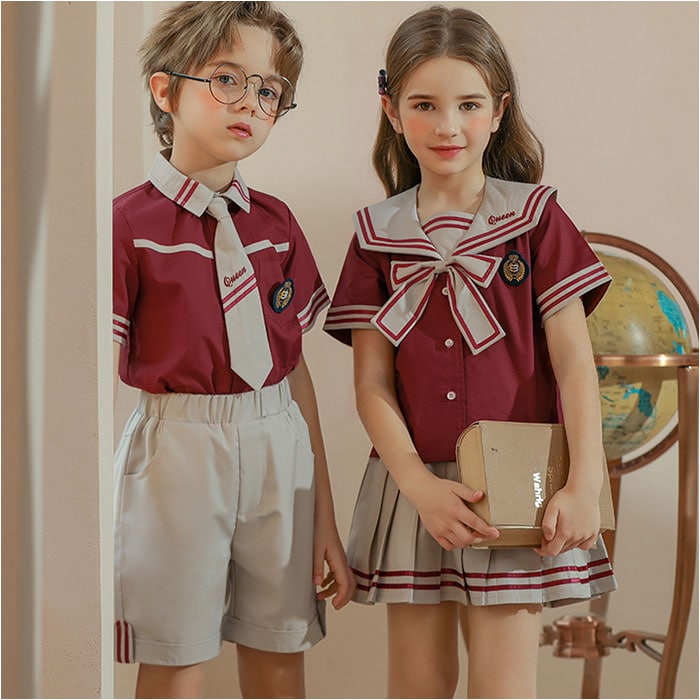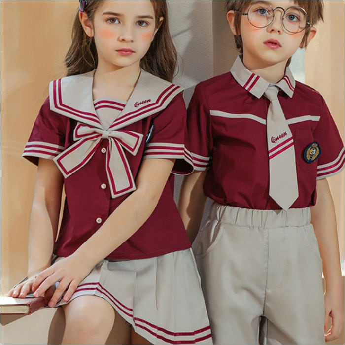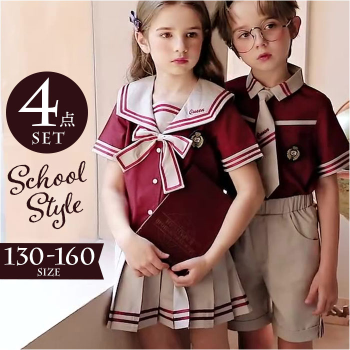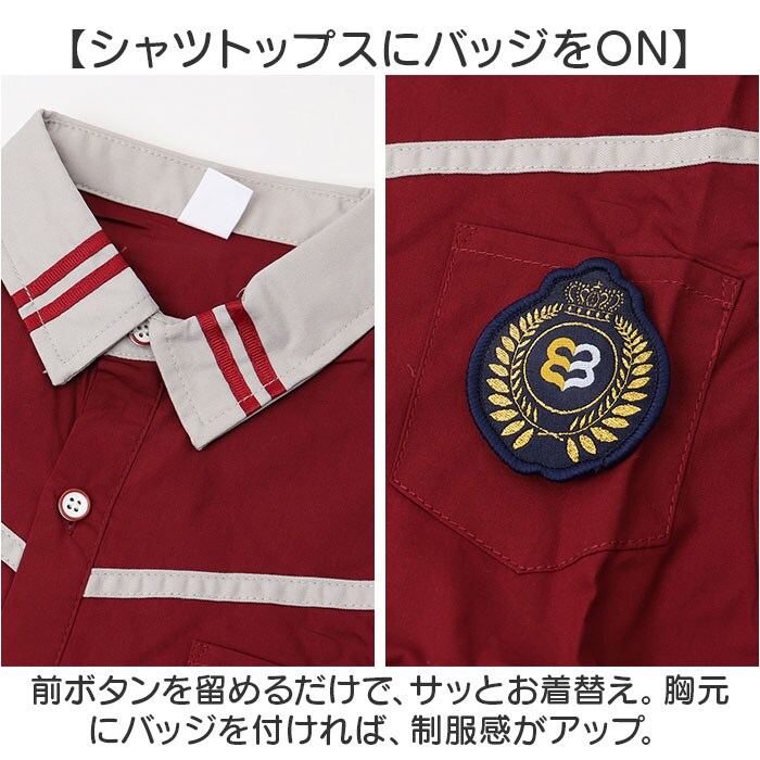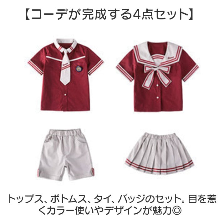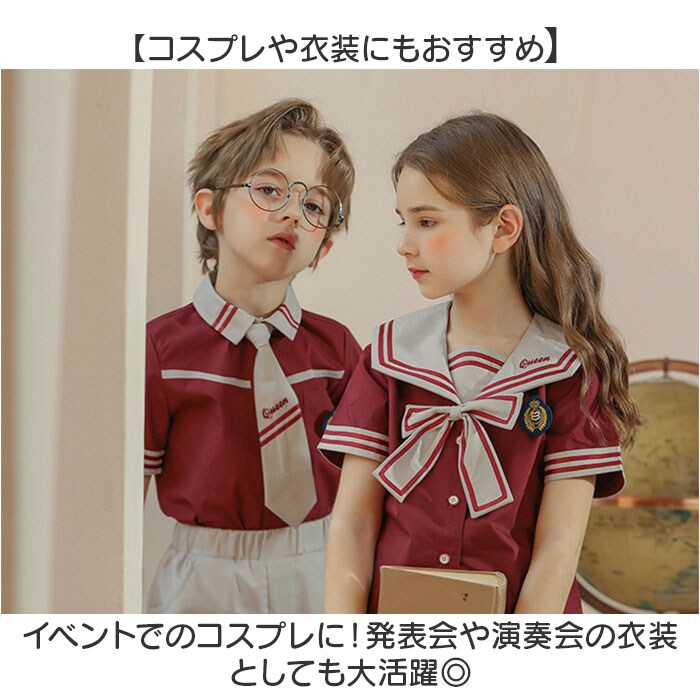 | 商品説明 | 【おしゃれなスクールコーデが叶う☆】男の子も女の子もお揃いの学園コーデ!イベントなどでも活躍する「キッズ用セットアップ」。【コーデが完成する4点セット】トップス、ボトムス、タイ、バッジのセット。目を惹くカラー使いやデザインが魅力◎【シャツトップスにバッジをON】前ボタンを留めるだけで、サッとお着替え。胸元にバッジを付ければ、制服感がアップ。【首元にアクセントをプラス】パッと華やぐタイ。伸縮性のあるゴム仕様&お好みの長さに調節でき、着脱も簡単。(※1)ボーイズ用はネクタイ、ガールズ用はリボンタイです。【自分サイズにすっきりフィット】ボトムスは締めつけを感じにくく、心地よくフィットするウエストゴム仕様。(※2)ボーイズ用はパンツ、ガールズ用はスカートです。パンツはポケット付き。【活発に動き回っても大丈夫】スカートにはサラッとした生地感のインナーパンツを。元気に動くガールズも安心のつくり。【コスプレや衣装にもおすすめ)イベントでのコスプレに!発表会や演奏会の衣装としても大活躍◎ |