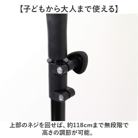 | サイズ | 【本体】 [縦]最長約118cm(調節可能)/[横]約53cm/[奥行]約43cm 【収納時】 [全長]約53cm 【ゴム製ボール置き部分】 [直径]約4.5cm/[高さ]約20cm ※サイズは当店計測の実寸サイズです。実際の商品ならびにメーカー表記サイズとは多少の誤差が生じる場合がございます。あらかじめご了承ください。 |