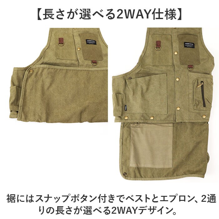 ベスト エプロン アウトドア キャンプ 2way【カーキ】