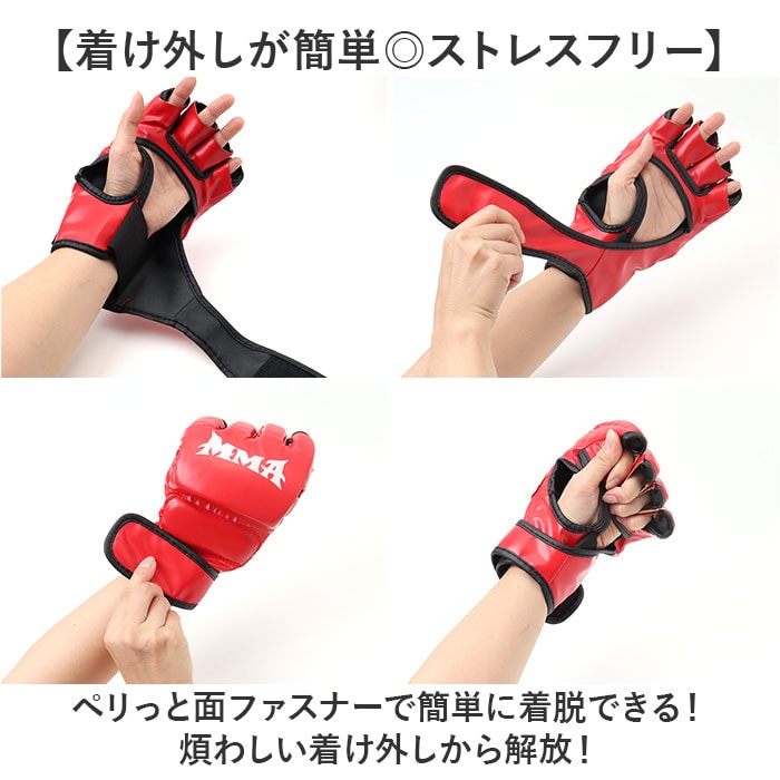 | 商品説明 | 【格闘技などのトレーニングに!】面ファスナーで、すぐ&簡単に装着◎「オープンフィンガーグローブ」が登場。【衝撃に強いパッド入り!】手の甲から指部分まで、パッドで手をプロテクトしてくれる仕様。衝撃や痛みを吸収。【着け外しが簡単◎ストレスフリー】ペリっと面ファスナーで簡単に着脱できる!煩わしい着け外しから解放!【ドライなつけ心地でムレにくい】熱を外に逃す、オープンフィンガータイプ。手のひら部分もオープンだからムレにくい。【ゴムベルトでフィット感UP】手首部分には伸縮するゴムバンドを搭載。面ファスナーとゴムベルトでキュッとフィット。【ファイターロゴがおしゃれ】シンプルデザインに、ファイターロゴが映える♪クールなデザインで気分がアガる! |