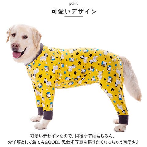 | 商品説明 | エリザベスカラーを嫌がるワンちゃんの術後のケアに◎「ペット用術後服」が登場。【術後の傷などの保護に◎】術後の傷口や薬を塗った後など、舐めてほしくない時にサッと着せるだけでOK。エリザベスカラーを嫌がるンワンちゃんにおすすめ。【ゴム仕様】四肢と首元とおしり周りはゴム仕様になっているので、着脱の際にしっかり伸びて着せやすい◎苦しくない着用感なのもGOOD♪【着たまま排泄OK】お尻部分は広めに開いているので、着たまま排泄OK。お散歩もOK。汚れにくいのも嬉しいポイント。【柔らかい着心地】よく伸びる柔らかい生地。動きを制限しないので、お散歩もリラックスの時の姿勢にもしっかりフィット。【可愛いデザイン】可愛いデザインなので、術後ケアはもちろん、お洋服として着てもGOOD。思わず写真を撮りたくなっちゃう可愛さ♪ |