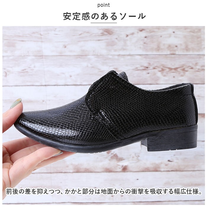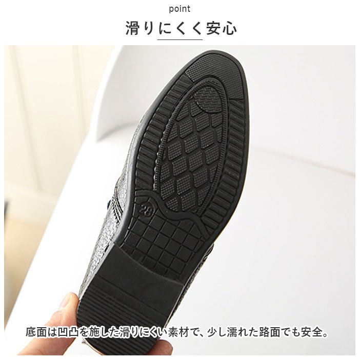 | 商品説明 | 足元もかっこよく☆大人顔負けのスタイリングがキマる、男の子用フォーマルシューズが登場。【シンプルなデザイン】程よいツヤ感のあるPU素材を使用。シューレス仕様のスタンダードなフォルム。【すっきりシルエット】つま先部分が細く、すっきり見えるシルエット。大人のフォーマルシューズのような仕上がり◎【歩きやすさが向上】屈曲性があり、つま先にかけてやや上を向いた形状。つまづきにくく、蹴り上げやすい!【安定感のあるソール】前後の差を抑えつつ、かかと部分は地面からの衝撃を吸収する幅広仕様。【滑りにくく安心】底面は凹凸を施した滑りにくい素材で、少し濡れた路面でも安全。【フォーマルシーンで】発表会やパーティー、結婚式お呼ばれシーンで大活躍! |