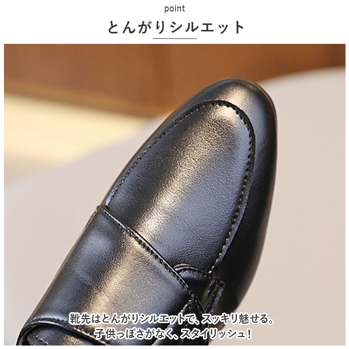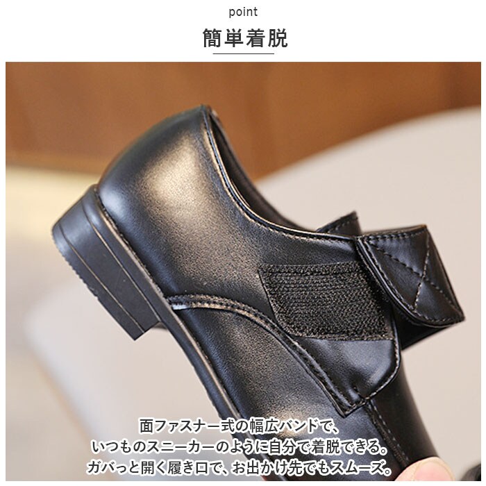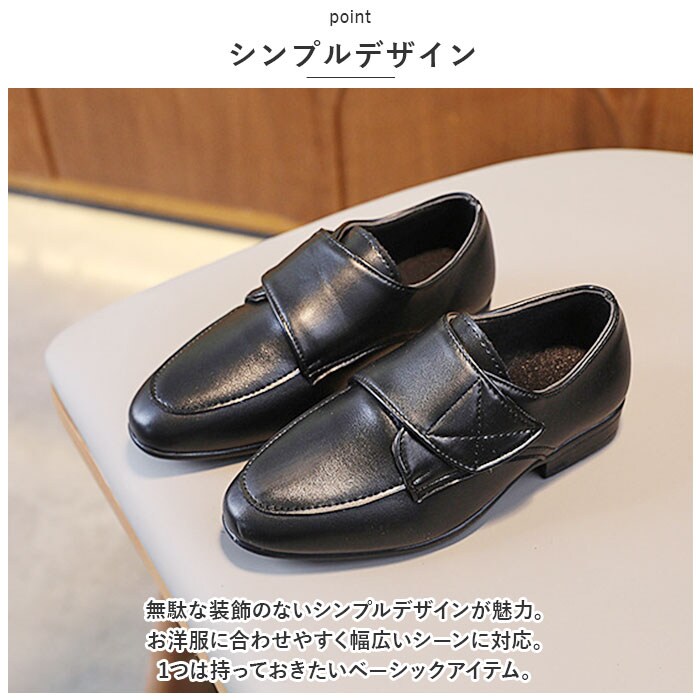 | 商品説明 | ガバっと開く履き口で、脱ぎ履きスムーズ!シンプルデザインが魅力の「フォーマルシューズ男の子」が登場。【PUレザー】PUレザーを使用したきっちり感のあるシューズ。ほどよくツヤ消しをしたマットな質感がおしゃれ。大人の革靴のような仕上がり。【簡単着脱】面ファスナー式の幅広バンドで、いつものスニーカーのように自分で着脱できる。ガバっと開く履き口で、お出かけ先でもスムーズ。【シンプルデザイン】無駄な装飾のないシンプルデザインが魅力。お洋服に合わせやすく幅広いシーンに対応。1つは持っておきたいベーシックアイテム。【フォーマルスタイルに】フォーマルスタイルにマッチ。お呼ばれシーンや発表会、卒園式や入学式、七五三など、足元までカッコよくキメたい日に活躍。【とんがりシルエット】靴先はとんがりシルエットで、スッキリ魅せる。子供っぽさがなく、スタイリッシュ!【歩きやすい】軽量設計&約1.5センチの厚さのかかとで、歩きやすさを実現。元気に動き回るお子様にもGOOD。【滑りにくい】靴裏には、滑り止め加工を施し、雨の日でも安心の仕様。 |