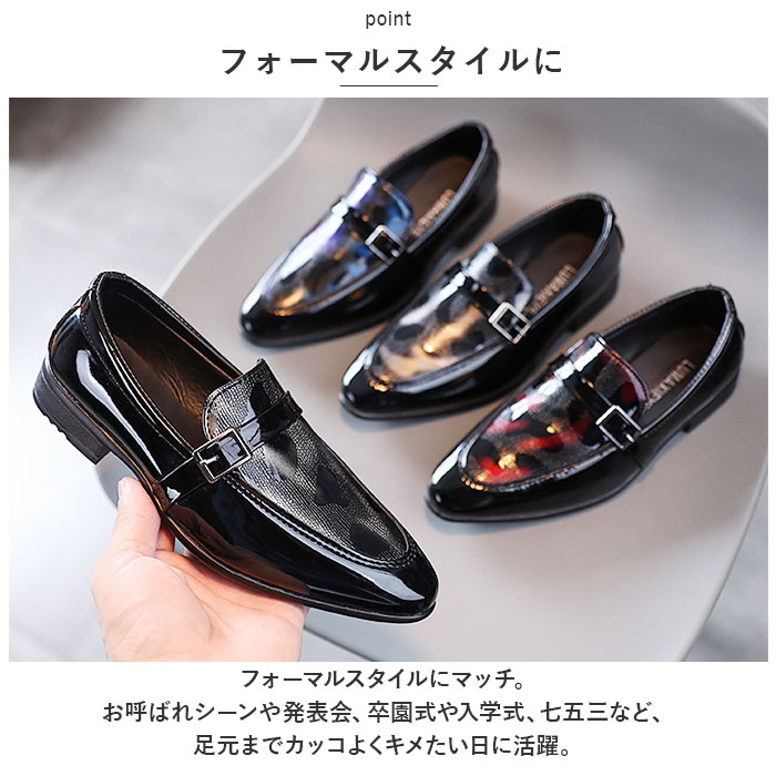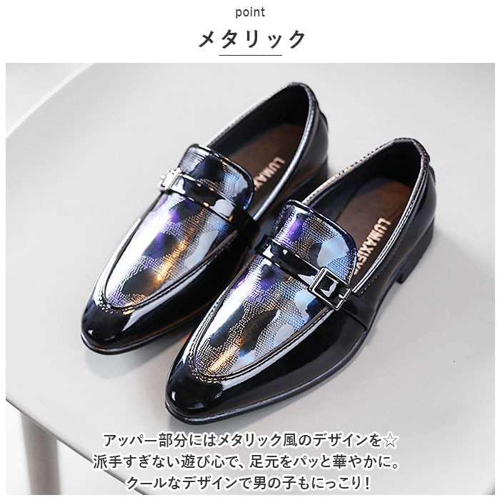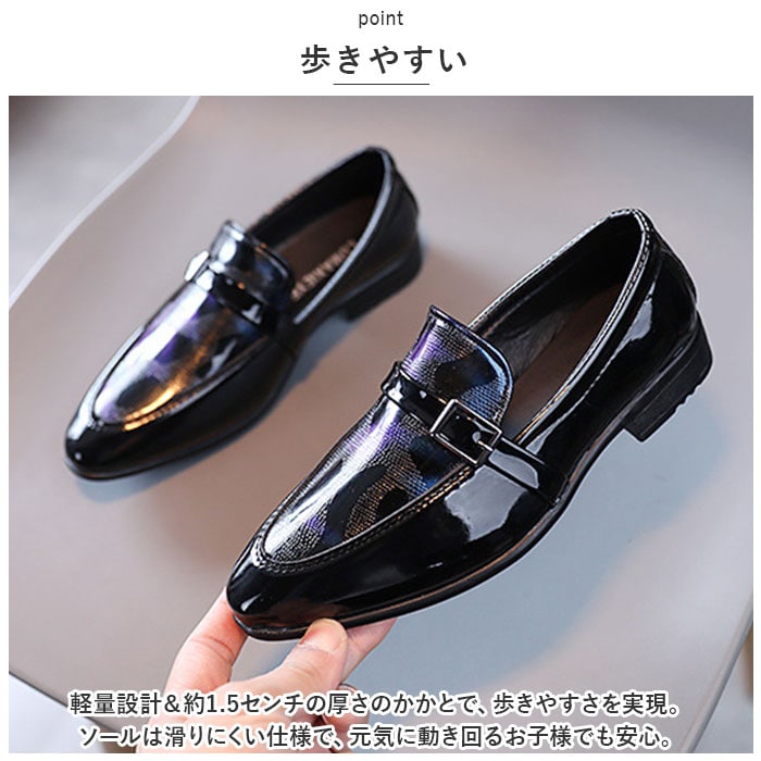 | 商品説明 | 光沢のあるPUレザーとキラリとメタリック。足元をカッコよくキメる!「フォーマルシューズ男の子」が登場。【PUレザー】PUレザーを使用したきっちり感のあるシューズ。ツヤのある光沢感が上品でカッコイイ。まるで大人の革靴!【メタリック】アッパー部分にはメタリック風のデザインを☆派手すぎない遊び心で、足元をパッと華やかに。クールなデザインで男の子もにっこり!【フェイクベルト】ベルトデザインで足元をキュッと引き締め☆よりシャープな印象に仕上がる。フェイクベルトなので歩行中に外れることがなく、安心。【フォーマルスタイルに】フォーマルスタイルにマッチ。お呼ばれシーンや発表会、卒園式や入学式、七五三など、足元までカッコよくキメたい日に活躍。【とんがりシルエット】靴先はとんがりシルエットで、スッキリ魅せる。子供っぽさがなく、スタイリッシュ!【歩きやすい】軽量設計&約1.5センチの厚さのかかとで、歩きやすさを実現。ソールは滑りにくい仕様で、元気に動き回るお子様でも安心。【選べるカラー】ブラックをベースに選べるカラー。どの色もお洋服に合わせやすい☆ |
