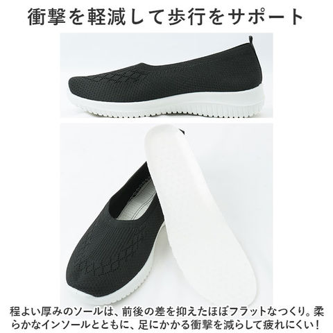 | 商品説明 | うれしい軽量設計!お出かけやウォーキングにも最適な、レディース用スニーカーが新登場。【足入れがスムーズなスリッポン】紐などがなく、スッと足を滑り込ませるだけ。心地よくフィットする浅履き仕様。いつでもどこでも脱ぎ履きに手間取らない!【履き心地軽やかでストレスフリー】足に負担がかかりにくい軽量設計。足取りがとっても軽やか。【気になるムレを防いで快適】アッパーやサイドは通気性の良いメッシュ素材。汗ばむ季節や、長時間履いた時もムレにくいのが嬉しい!【歩きやすさが向上するソール】しなやかな屈曲性があり、つま先にかけてやや上を向いた形状。つまづきにくく蹴り上げやすさもばっちり◎【衝撃を軽減して歩行をサポート】程よい厚みのソールは、前後の差を抑えたほぼフラットなつくり。柔らかなインソールとともに、足にかかる衝撃を減らして疲れにくい!(※インソールは取り外し可能。)【安定感のある歩行をサポート】底面は凹凸のある滑りにくい仕様で、安全面にも配慮。【医療現場などでも重宝】サッと履けて使い勝手抜群な1足。ナースシューズとしても活躍。 |