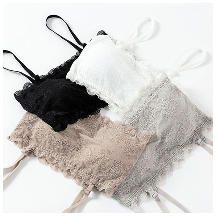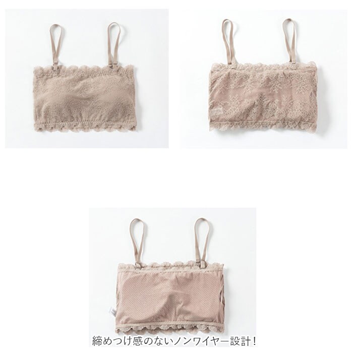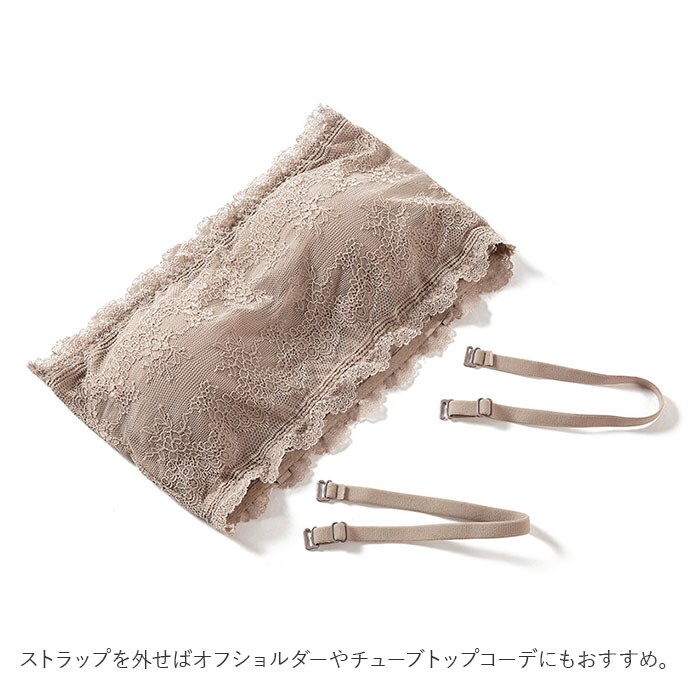 | 商品説明 | 胸元の開いてる服も気にせず楽しめる♪ブラジャーが発売。背中にも透け感のあるレース素材を使用しているので見せブラとしても◎ストラップを外せばオフショルダーやチューブトップコーデにもおすすめ。締めつけ感のないノンワイヤー設計!伸縮性のある素材なので、身体に心地よくフィット。ホックなどがなく、頭からすっぽり被るだけで着脱ラクチン。パッドは取り外しできるから、お手入れしやすいのも嬉しいポイント! |